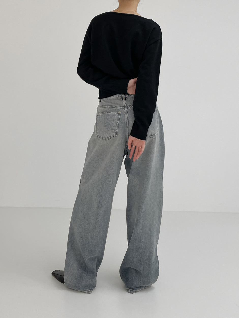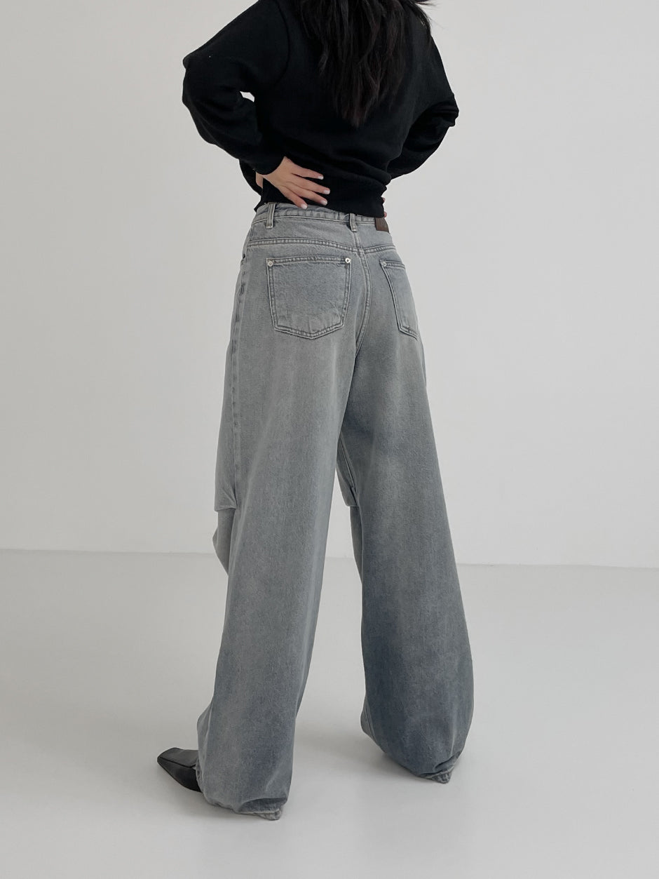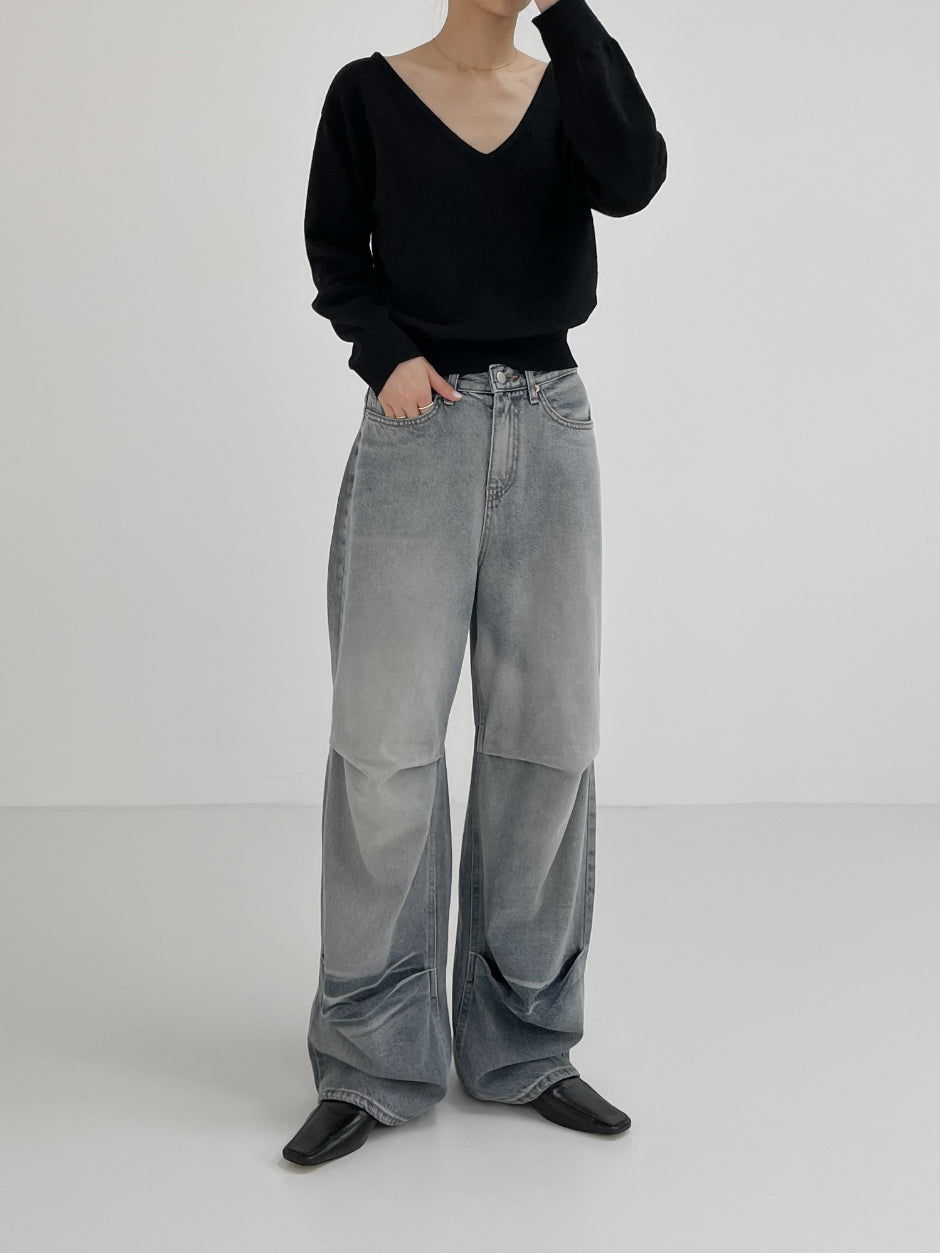 855 Pintuck Wide Denim Pants