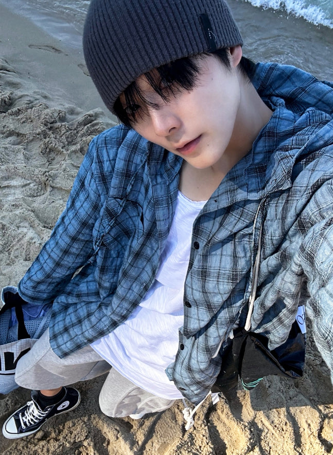 アーロンリネンチェックフードシャツ