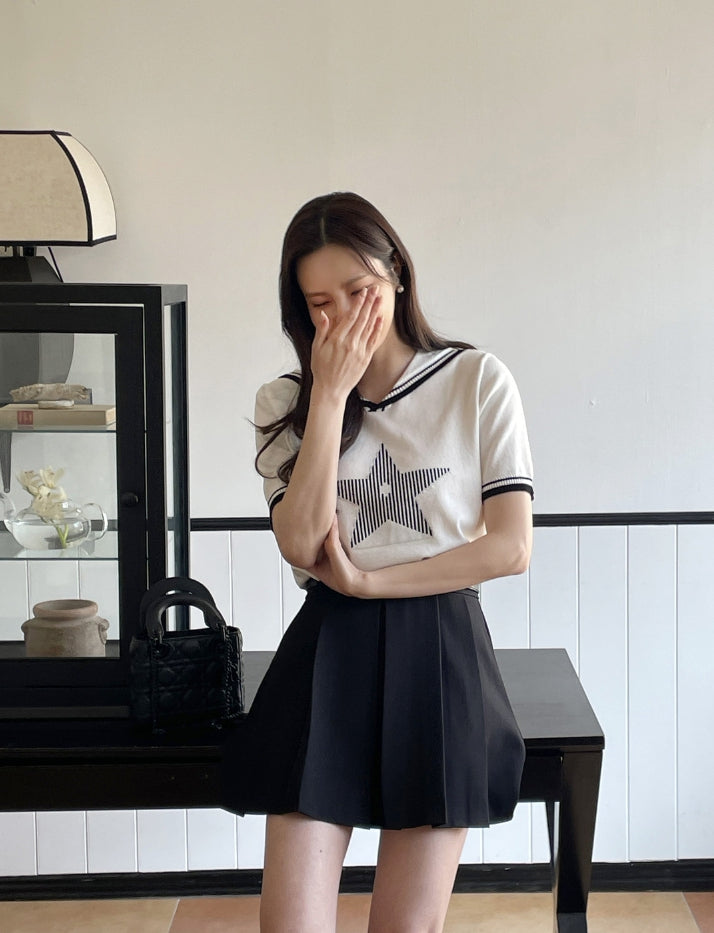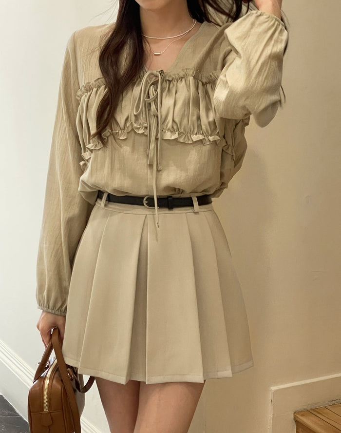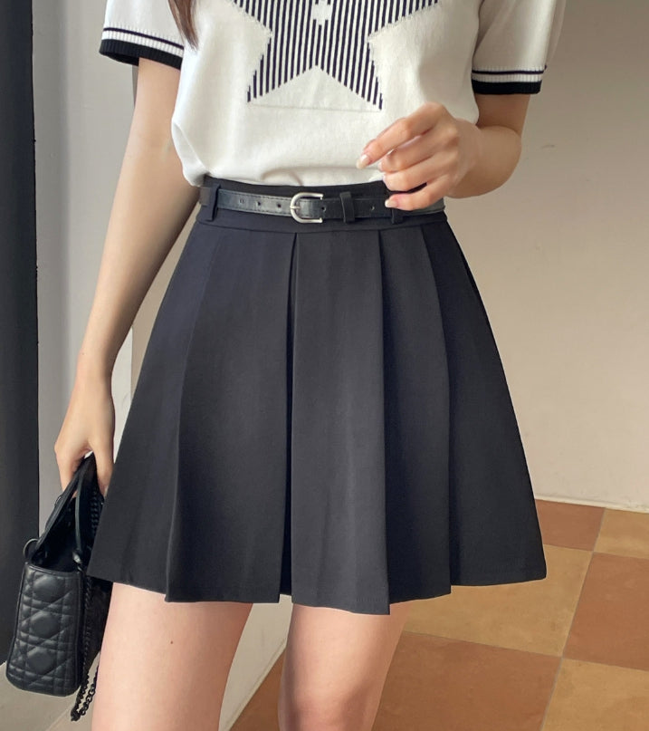 Abeto Pleated Mini Skirt Pants (Belt Set))