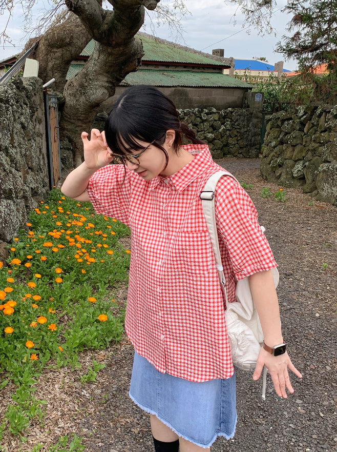 アデムポケットチェック半袖シャツ