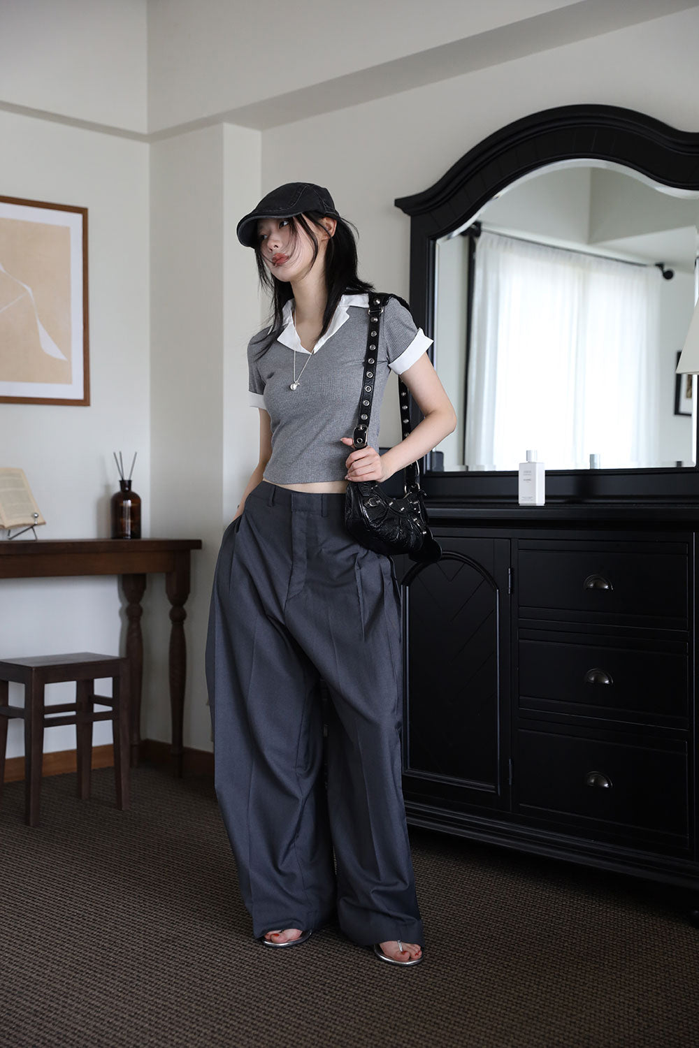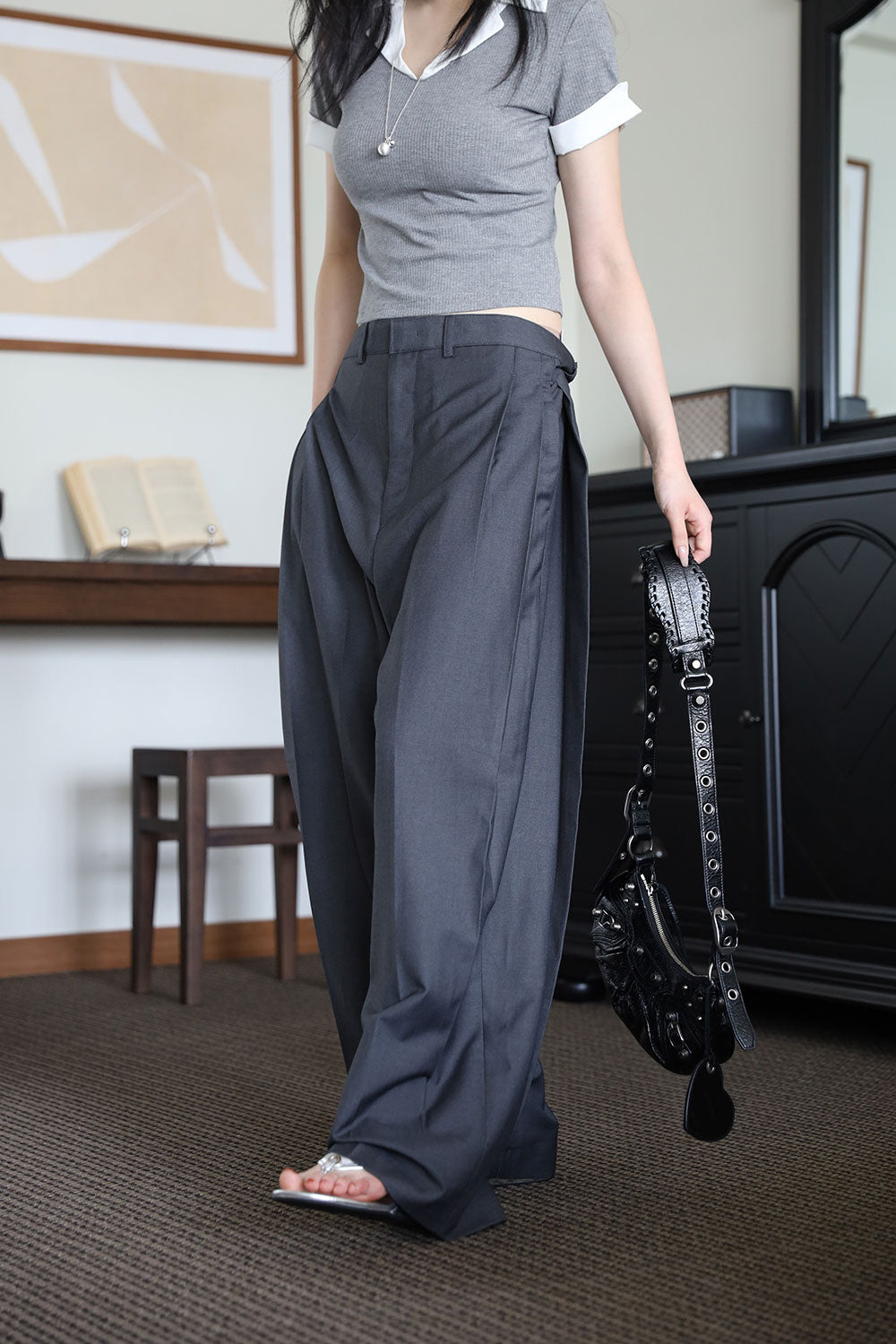 アダーピンタックワイドスラックス
