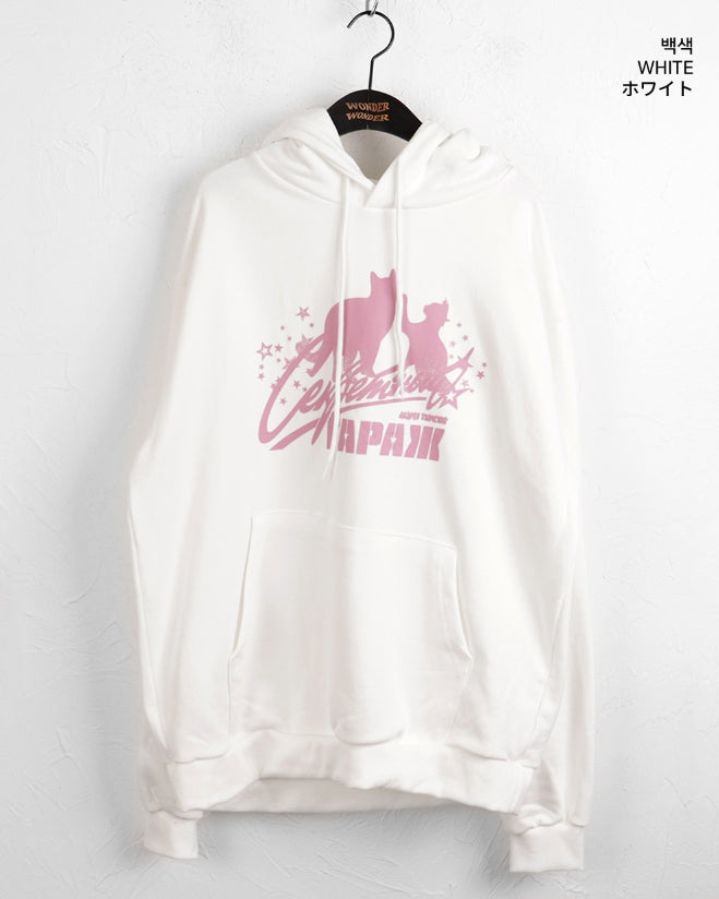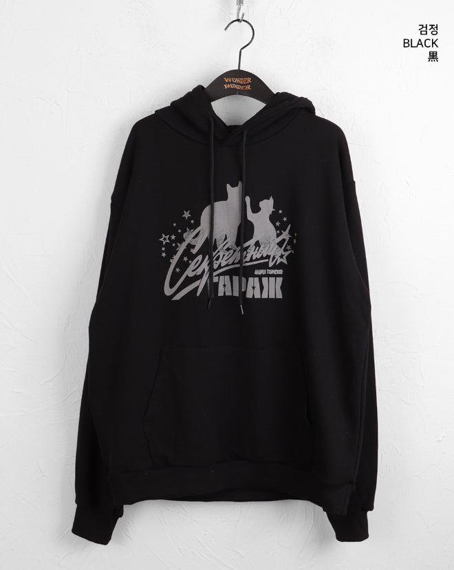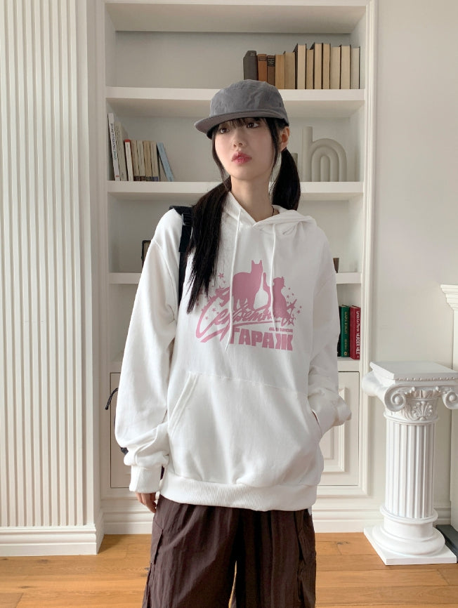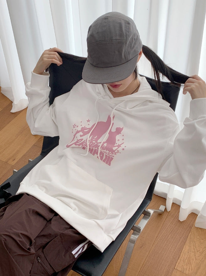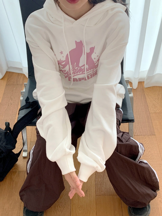 Aesop Y2K Cat Star Print Long Sleeve Hood Sweatshirt