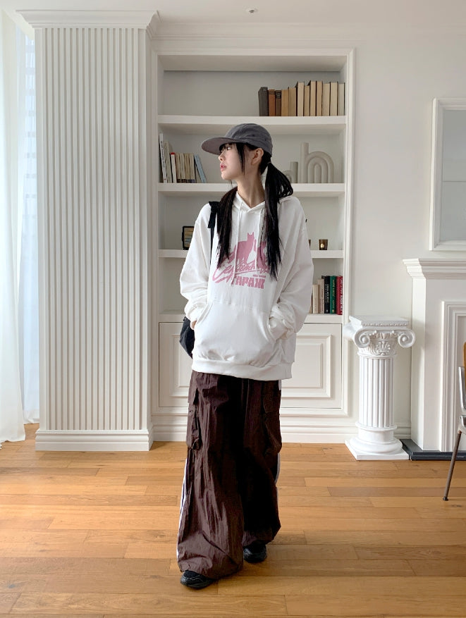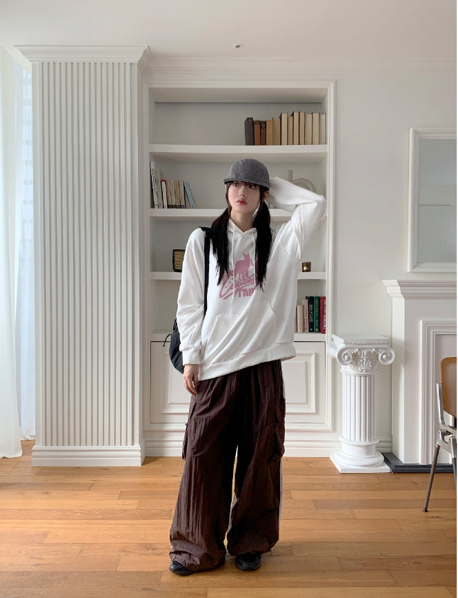 イソップY2K猫スタープリント長袖フードスウェットシャツ
