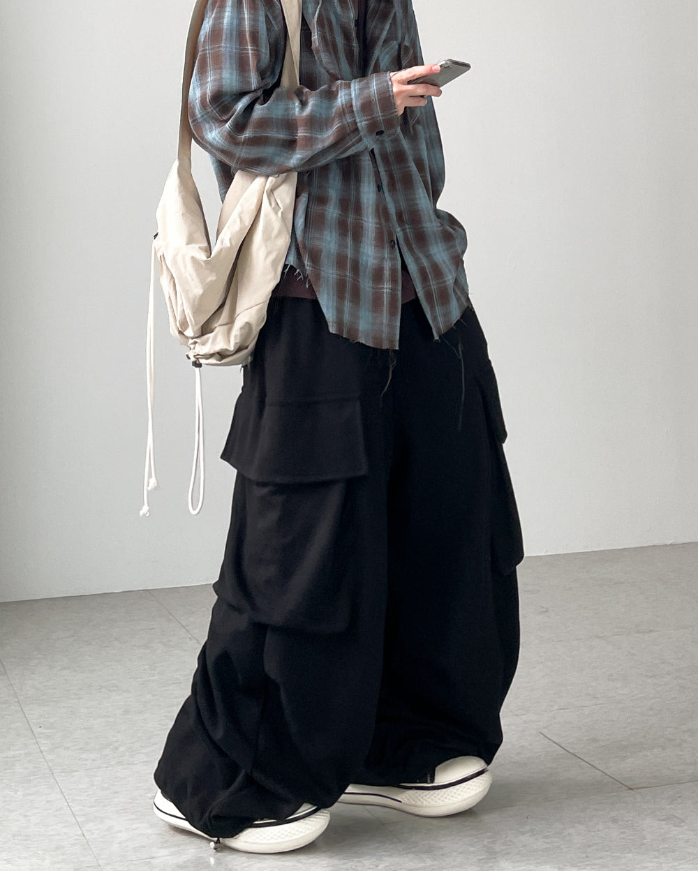 -ONE SIZE (ウエスト(ゴム)70-98 ヒップ- 股上44 股下63 もも周り82 裾周り64 総丈107)