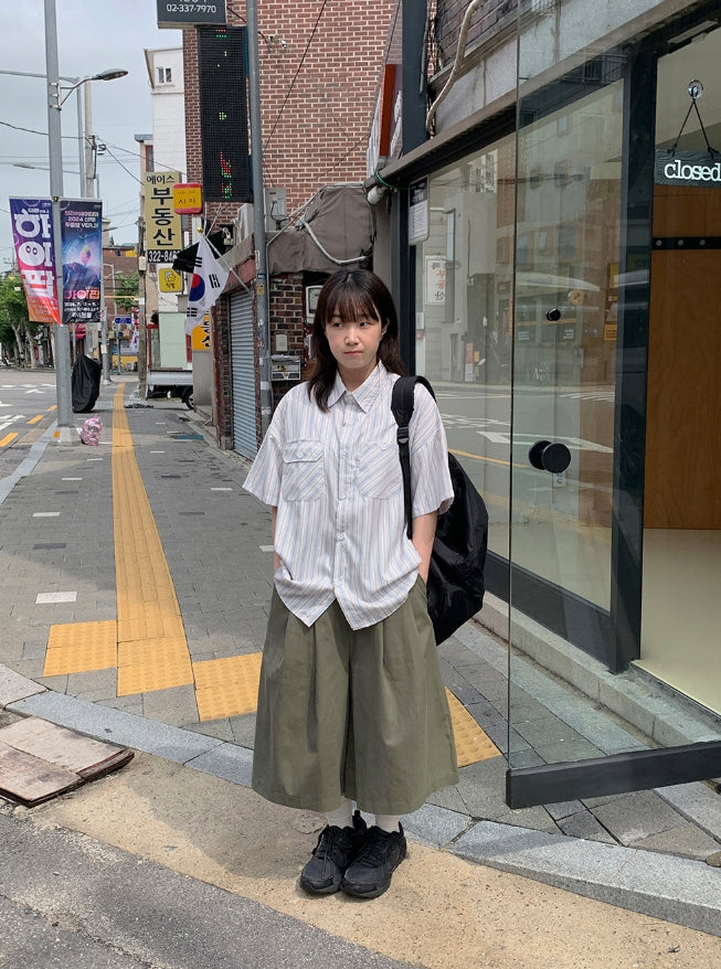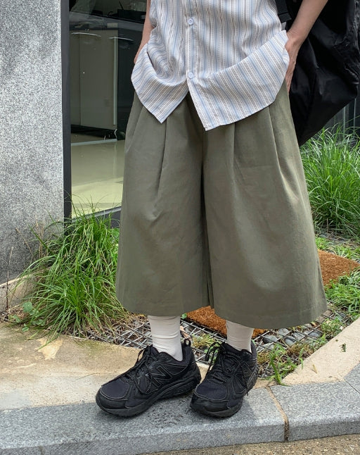 Ald Pin Tuck Banding Bermuda Cotton Pants
