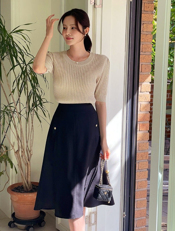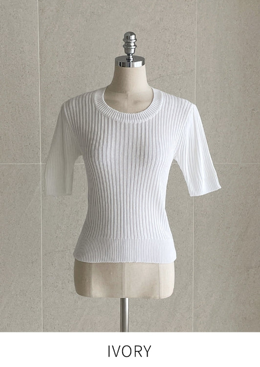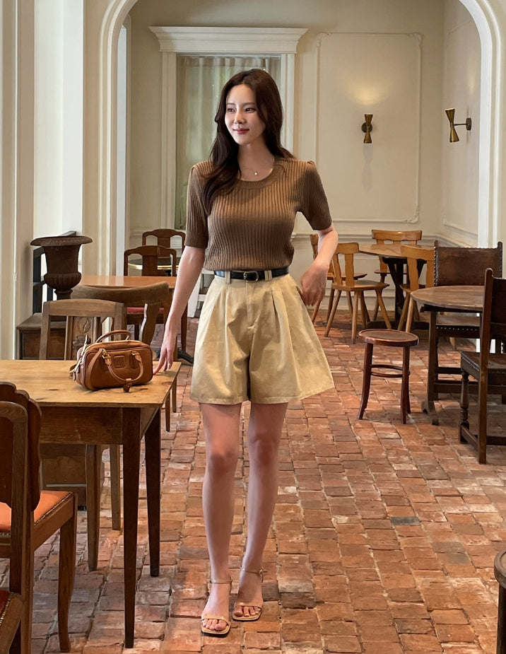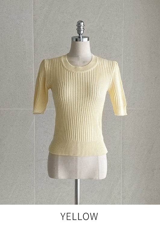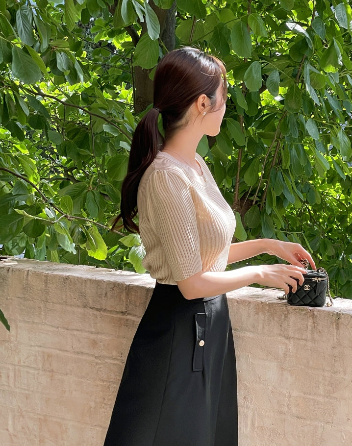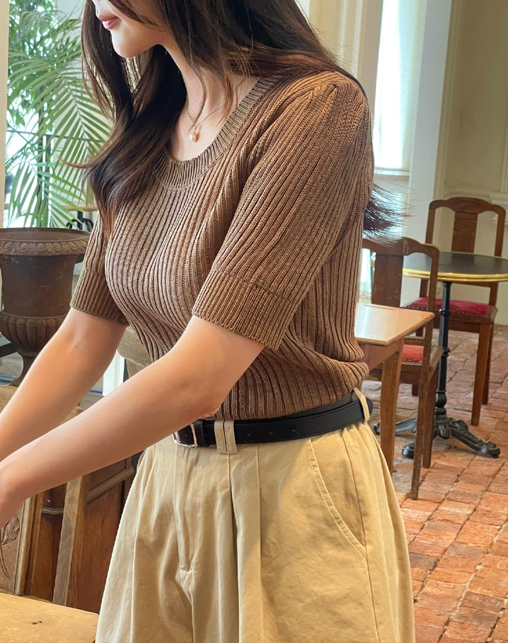 Alia Shirring Rib Short Sleeve Knitwear