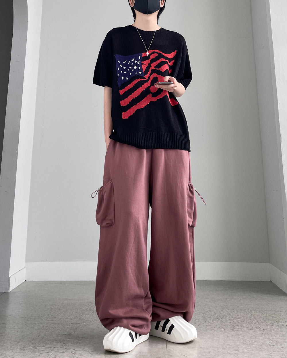 −ONE SIZE (ウエスト(ゴム)66-104 ヒップ- 股上37 股下69.5 もも周り74 裾周り54 総丈106.5)