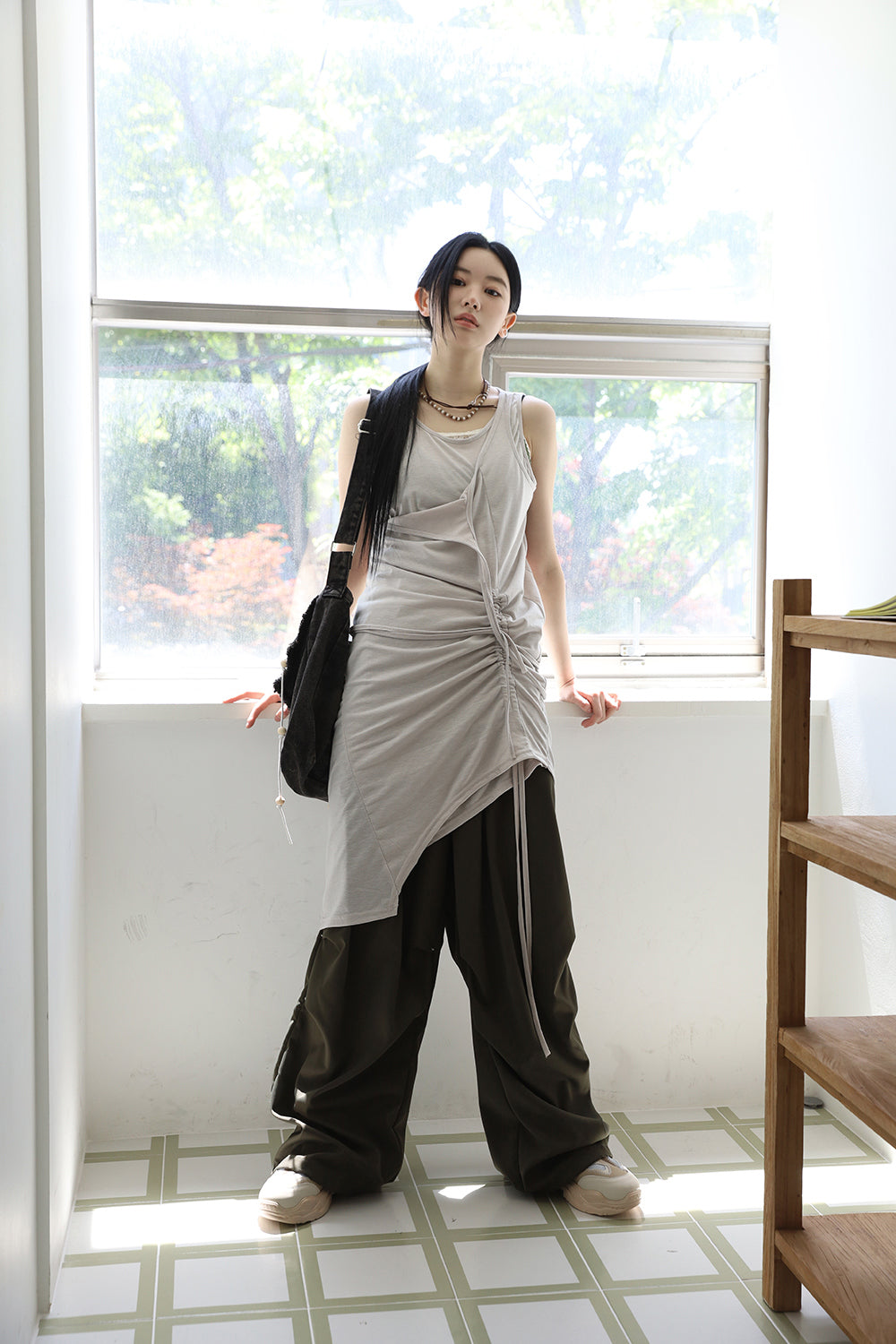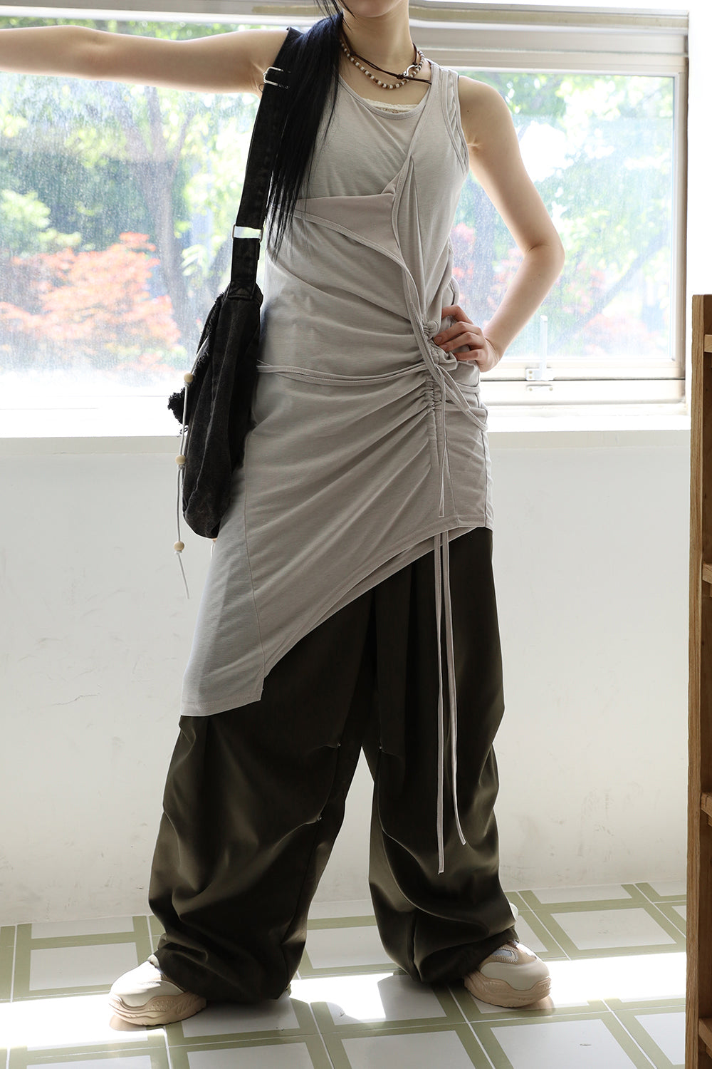 -ONE SIZE (ウエスト(ゴム)62-102 ヒップ140 股上38 股下67.5 もも周り78 裾周り57 総丈105.5)
