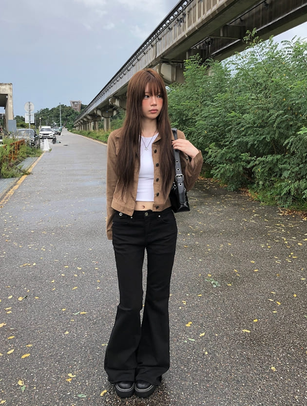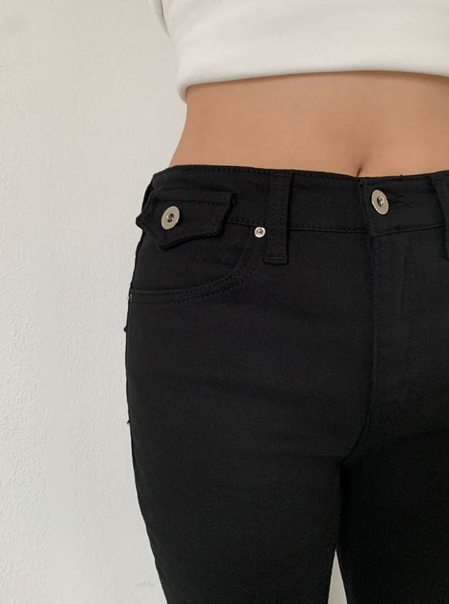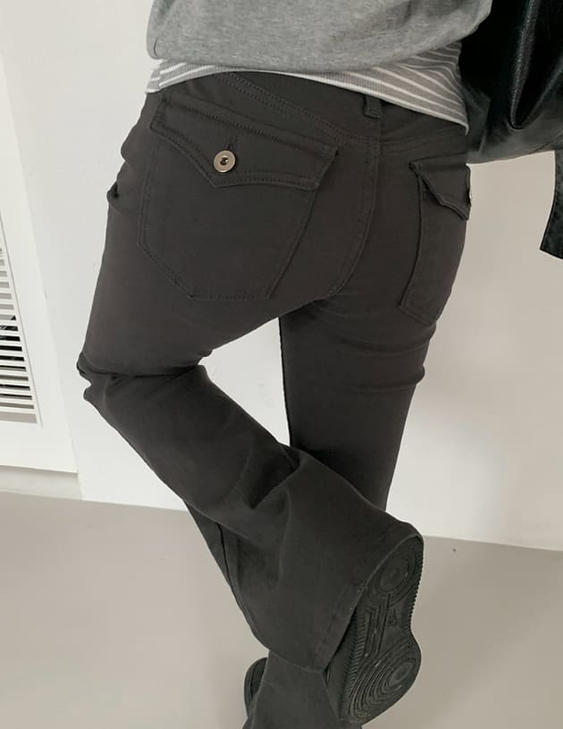 アリンバックポケットロングブーツカットスリムフィットコットンパンツ