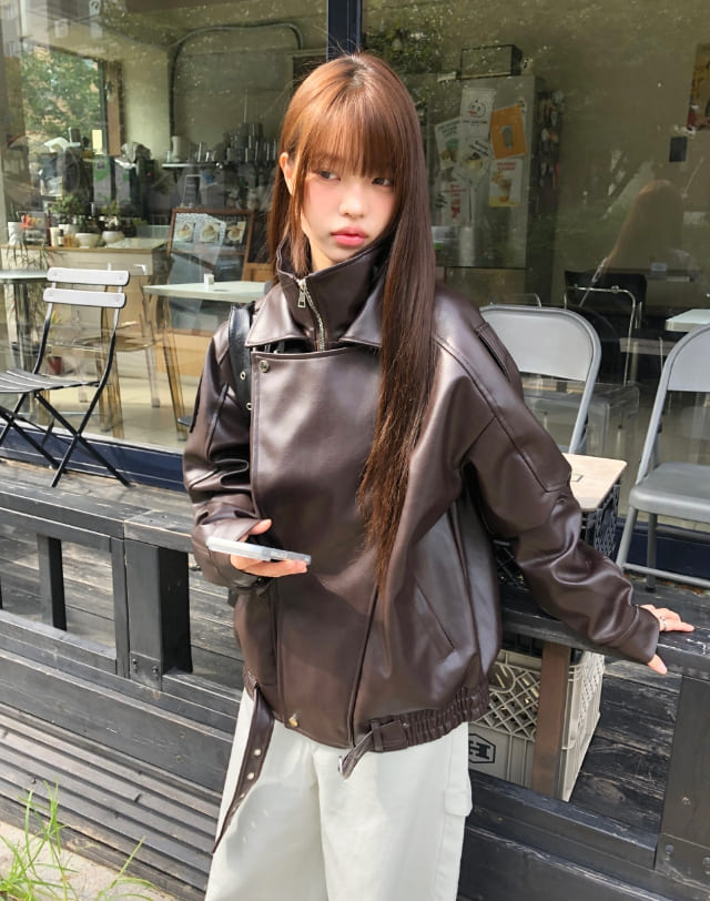 アリンベルトオーバーフィットレザージャケットジャンパー