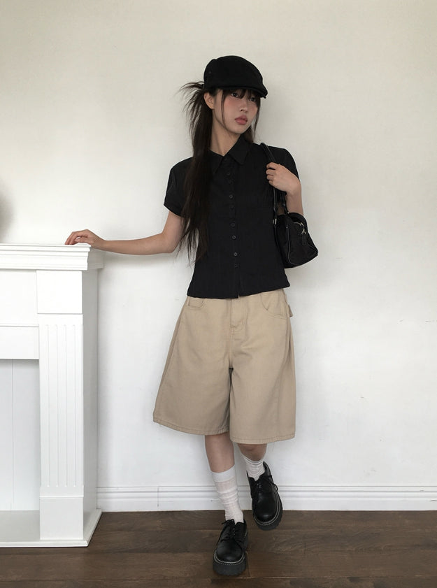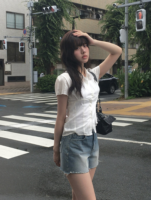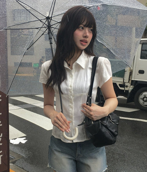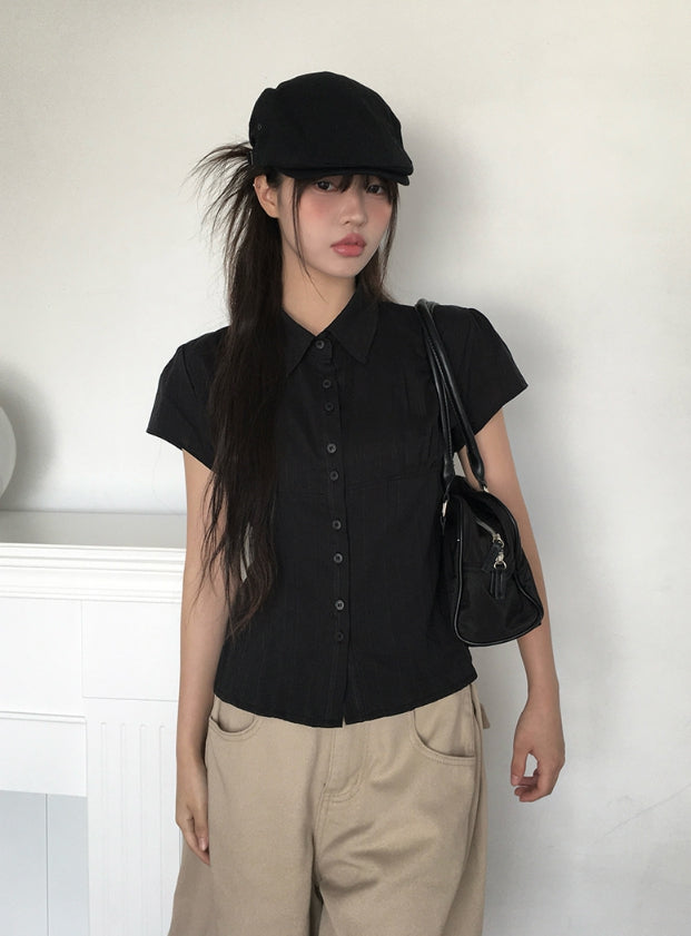 Alone Collar Cap Sleeve Wrinkle Short Sleeve Blouse Shirt