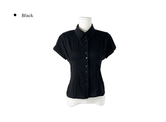 アローン襟付きキャップ袖リンクル半袖ブラウスシャツ