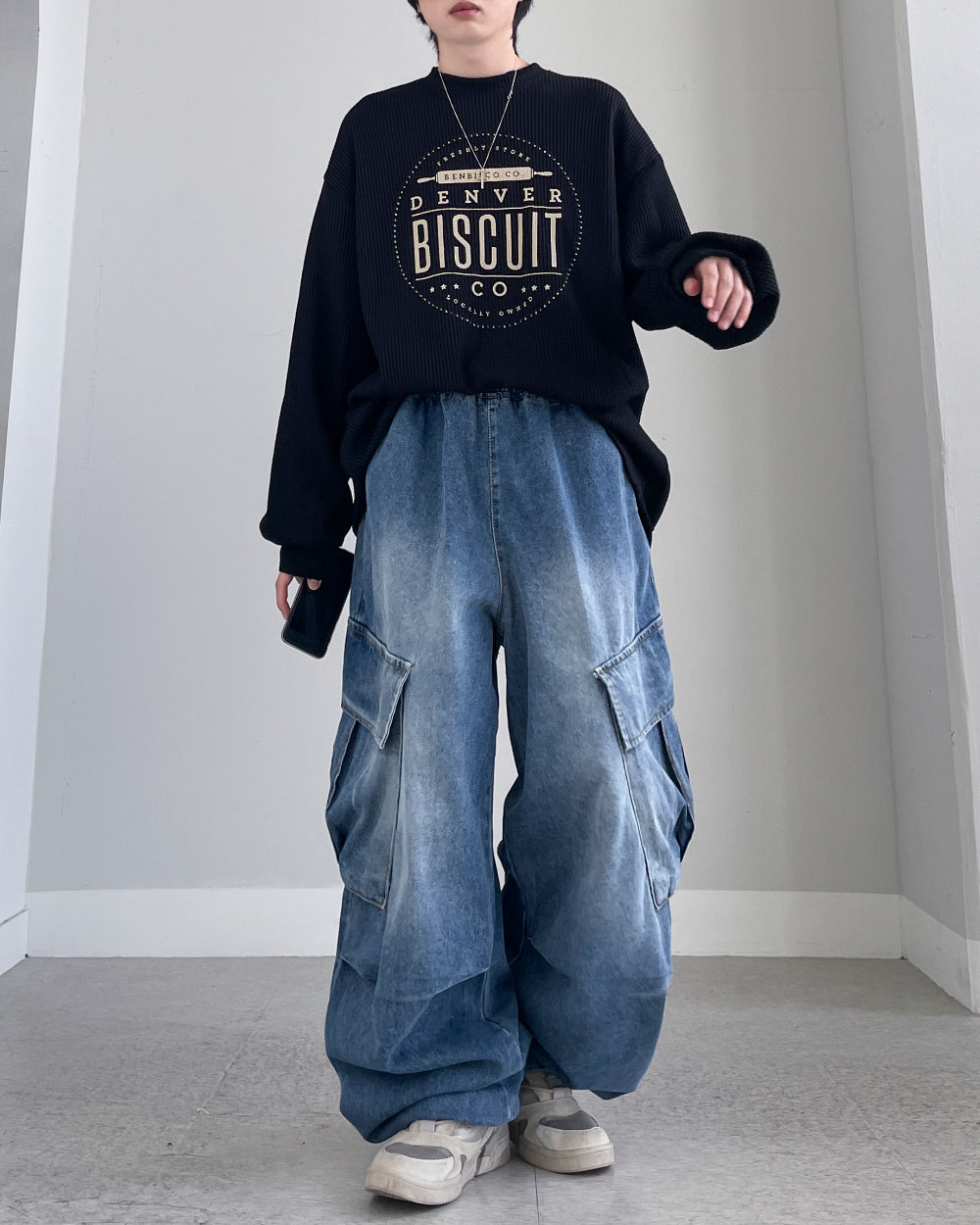 −ONE SIZE (ウエスト(ゴム)62-90 ヒップ- 股上37 股下71 もも周り71 裾周り51 総丈108)