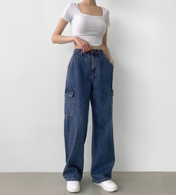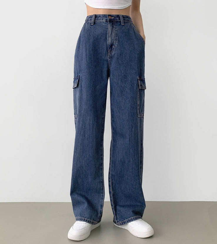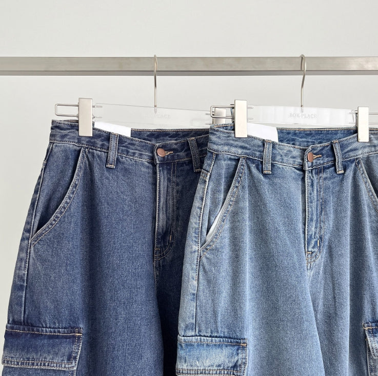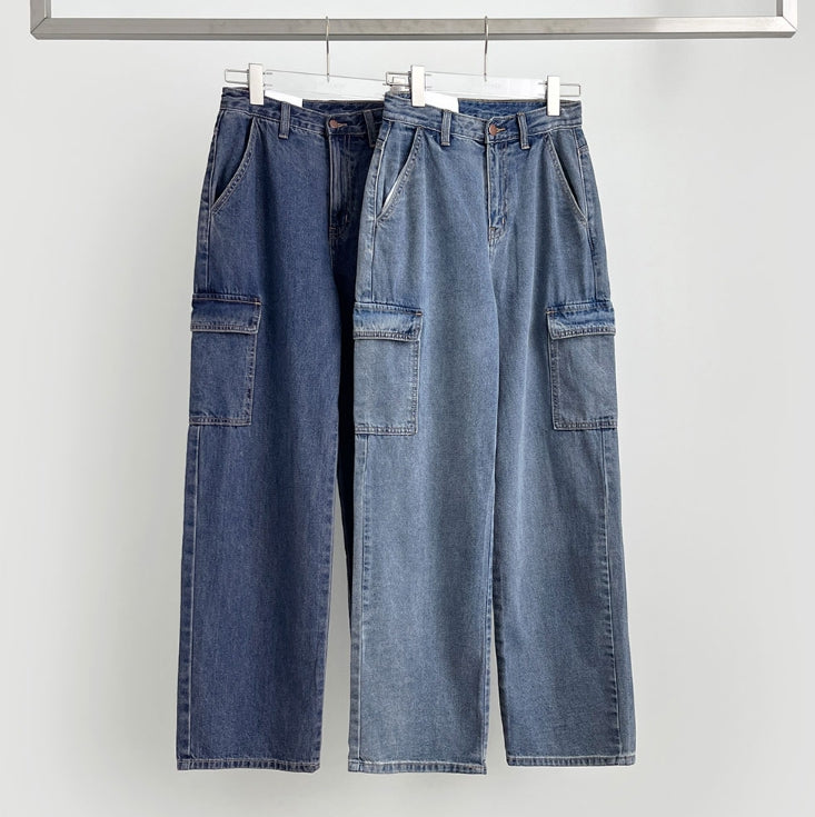 American Casual Cargo Pocket Classic Long Wide Denim Pants