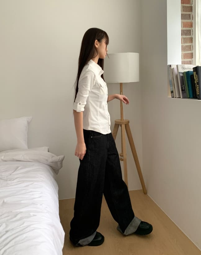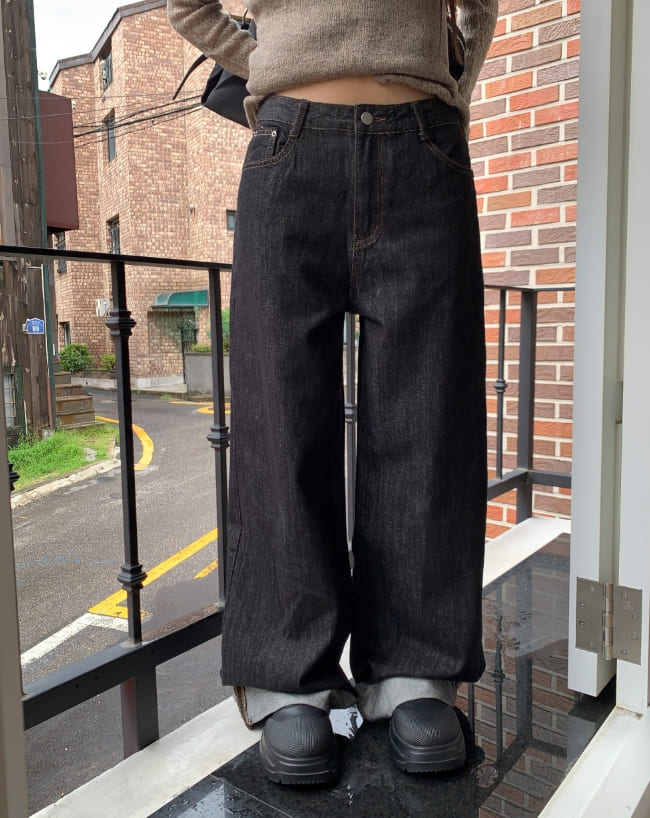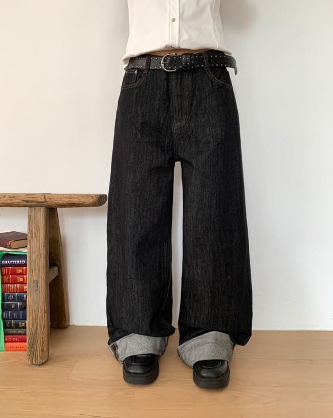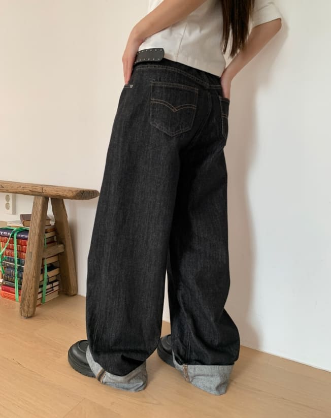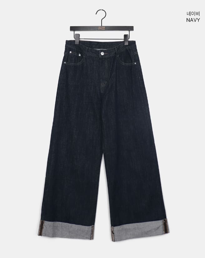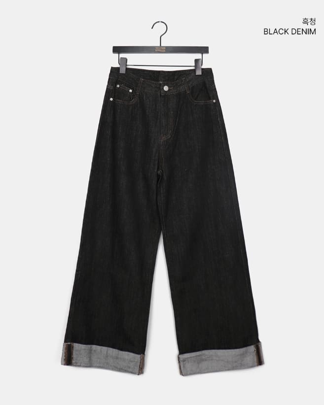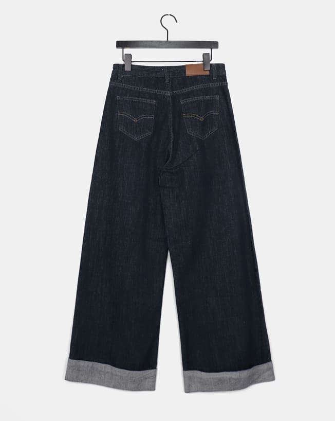 American Made Non-Fade Roll-Up Pocket Wide Denim Long Pants