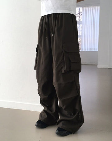 Adic Double Pocket Pintuck Cargo Two-Way Long Wide Jogger Pants
