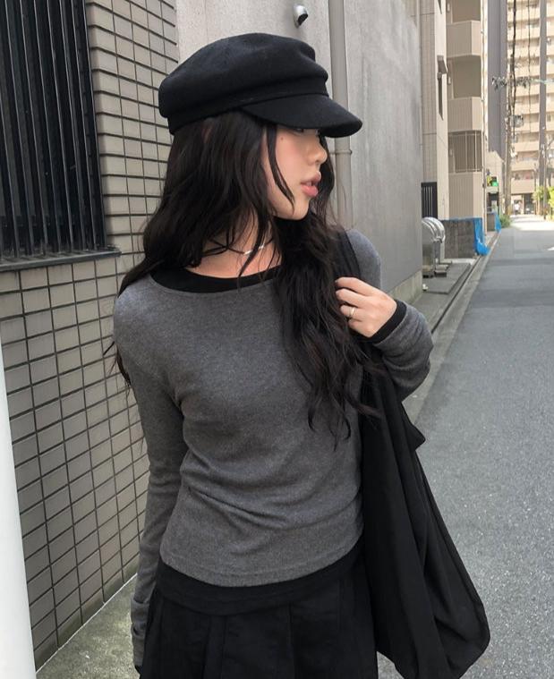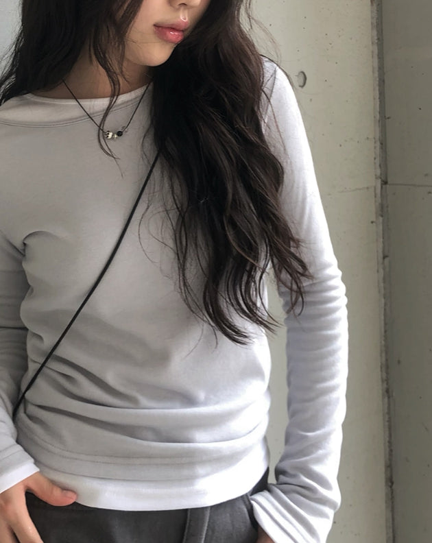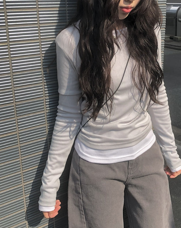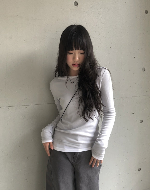 [1+1][MADE] Border Layered Tencel Long Sleeve T-shirt