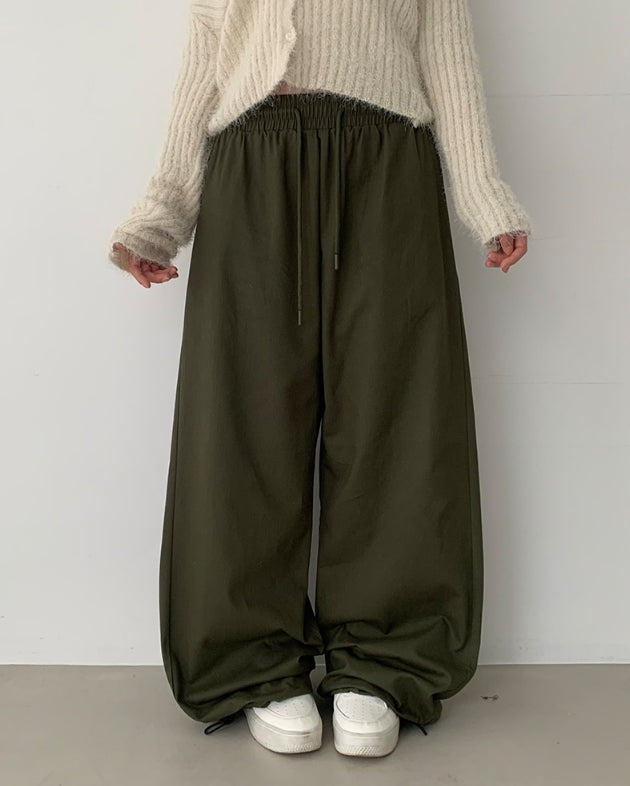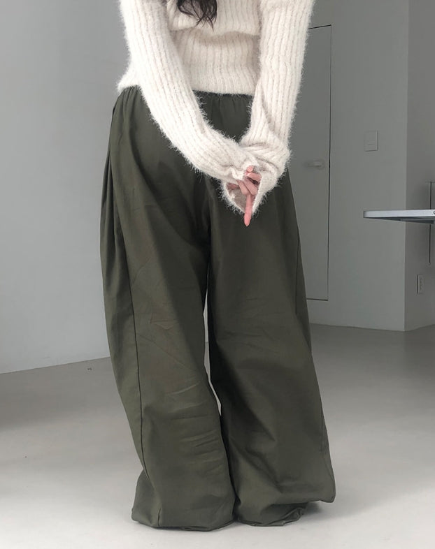 [A/M] Poning Cotton Banding Wide Pants