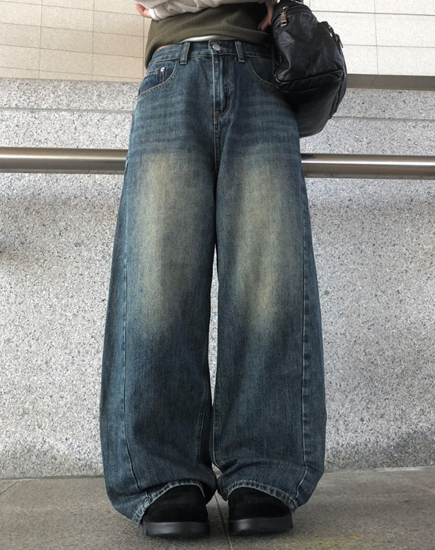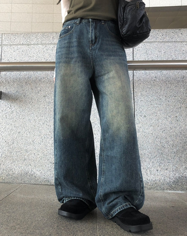 [A/M] Slrun Cut Denim Washing Wide Pants