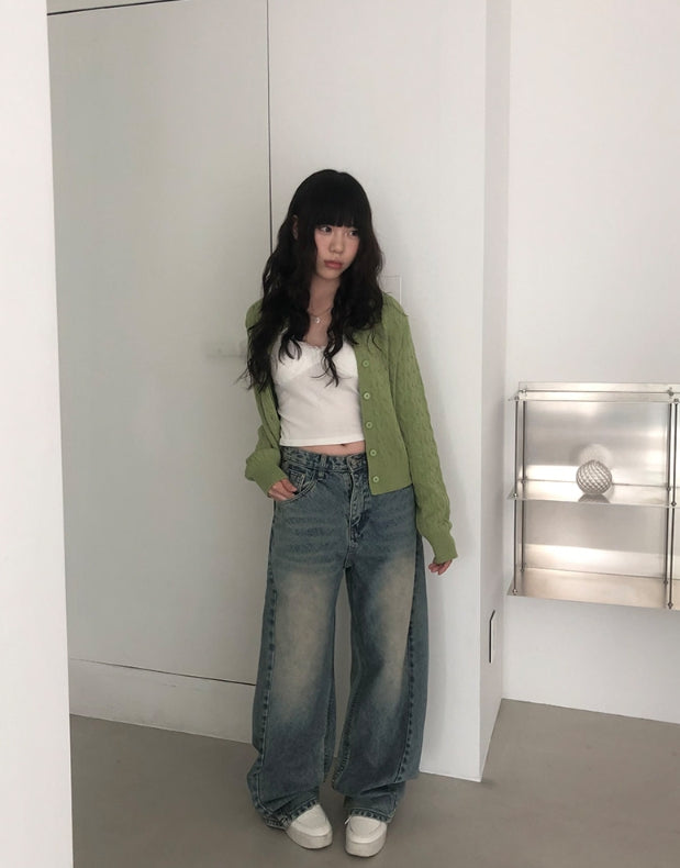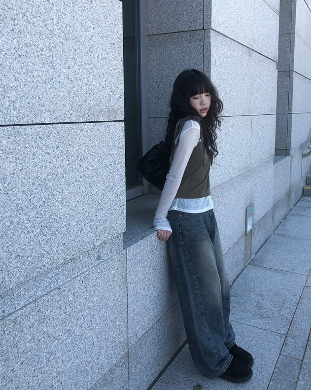 [A/M] Seulleon Cut Denim Washing Wide Pants