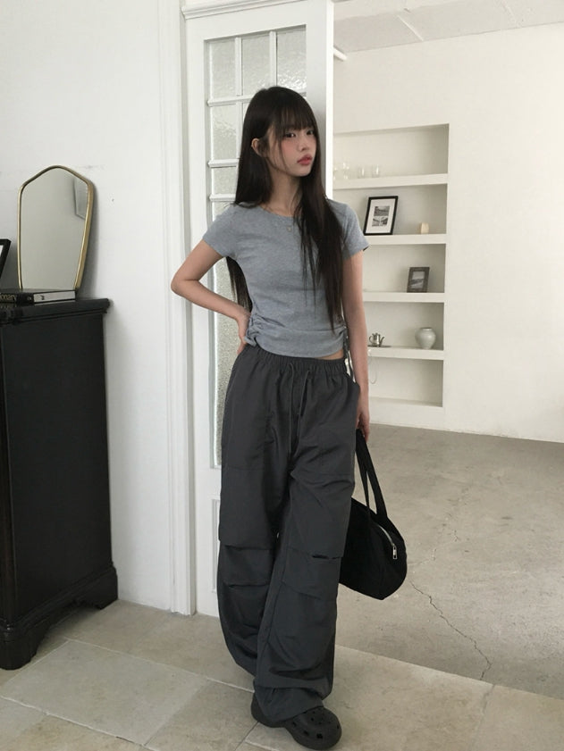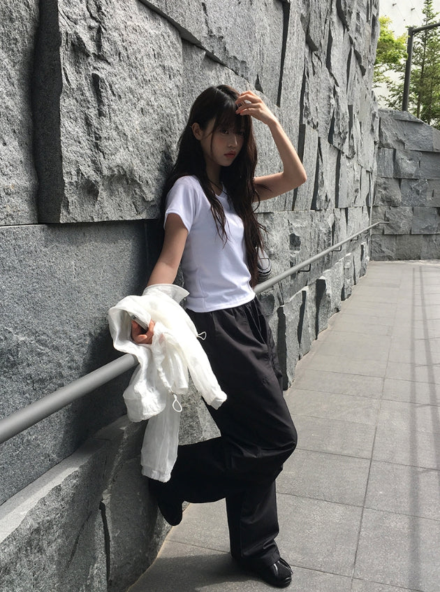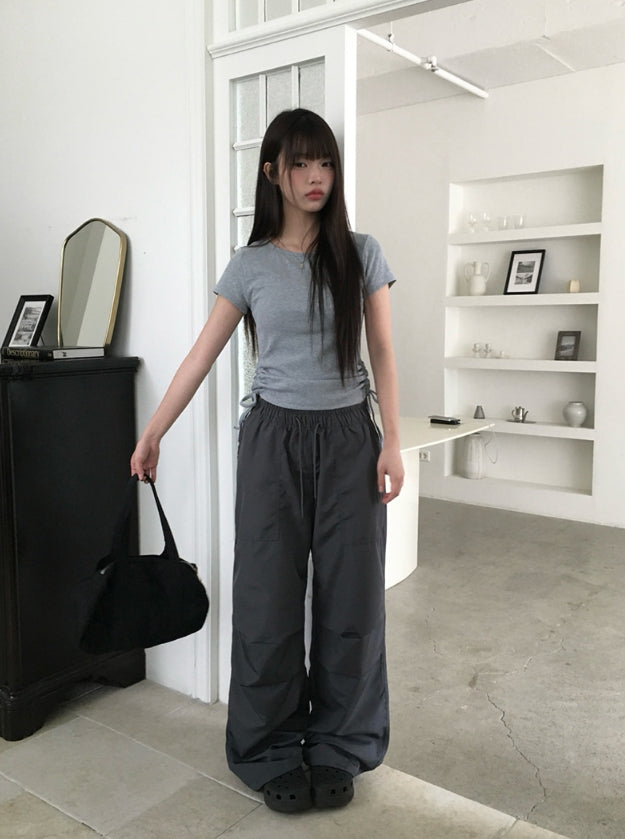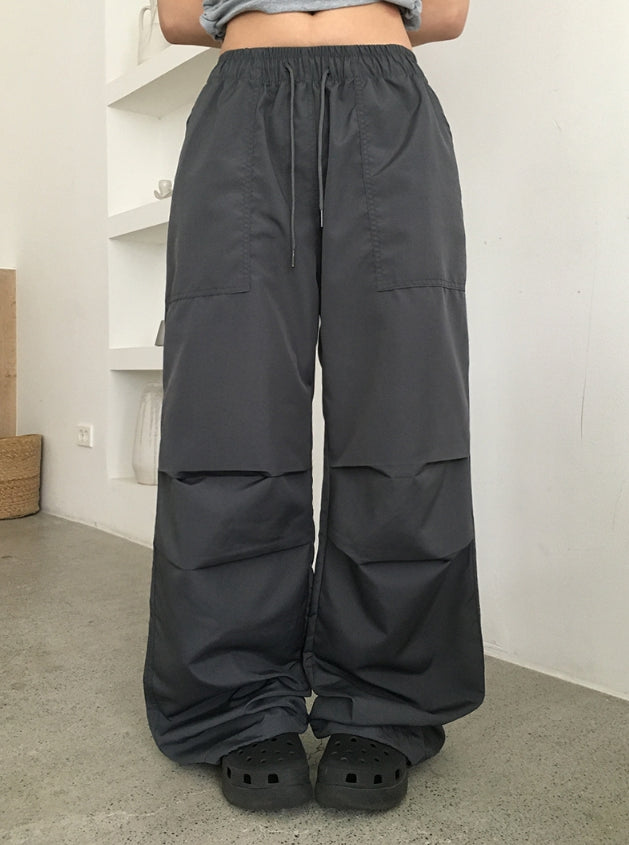 [A/M]Miran Nylon String Pintuck Wide Pants