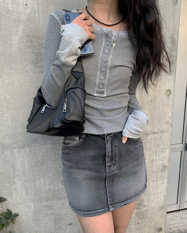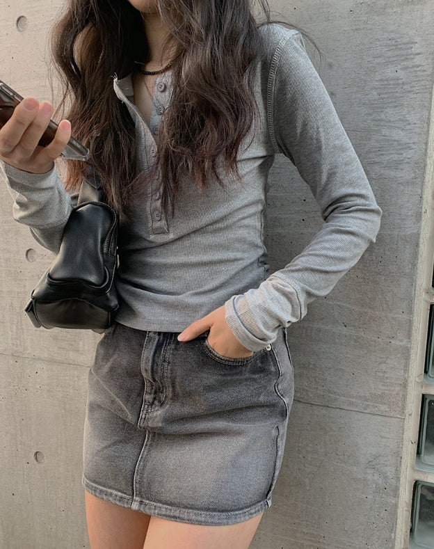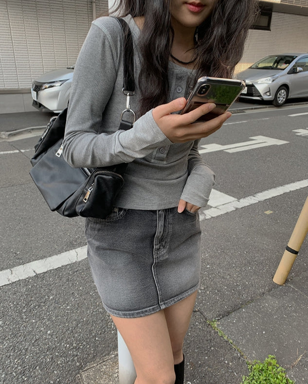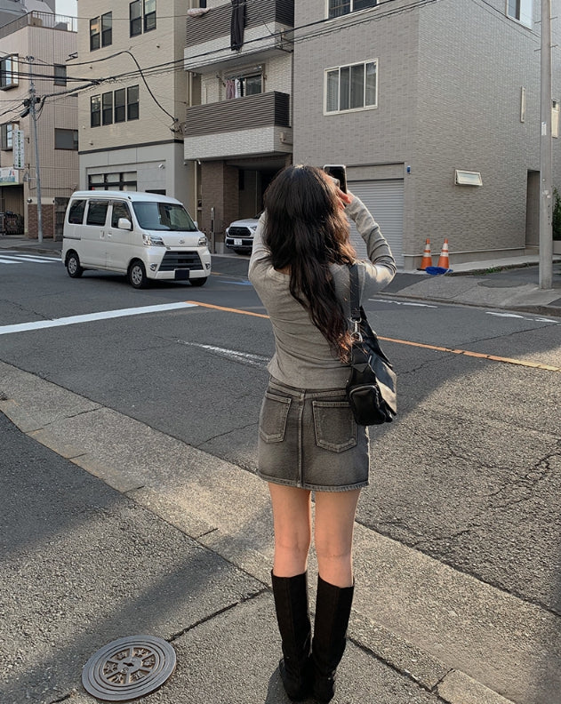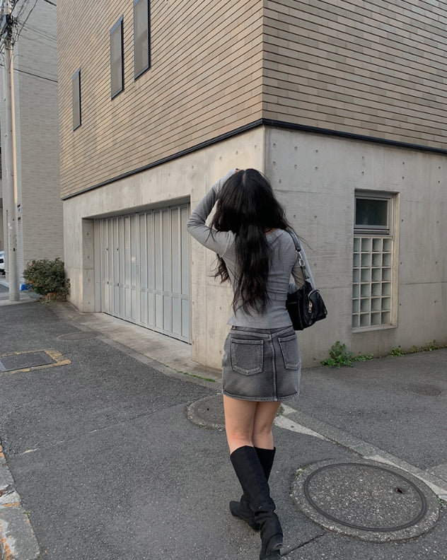 Alt Black Denim Washing Denim Mini Skirt