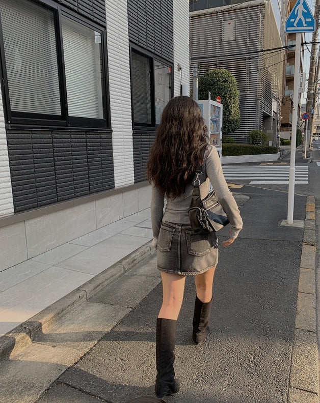アルトブラックブルーウォッシングデニムミニスカート
