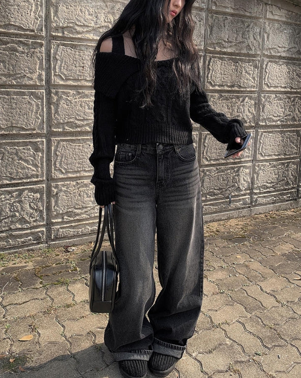 アンジーオフショルダーケーブルニット