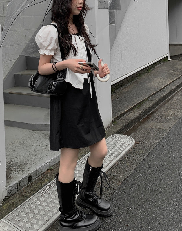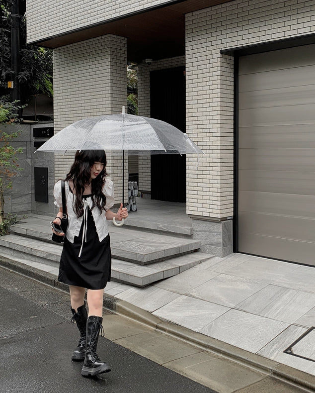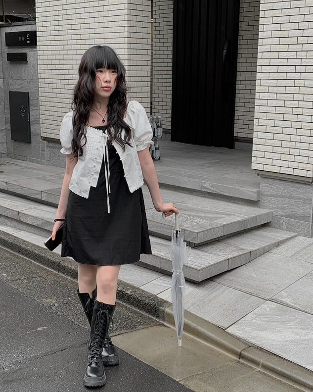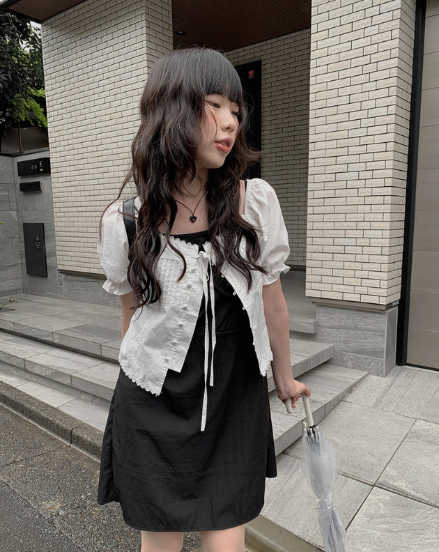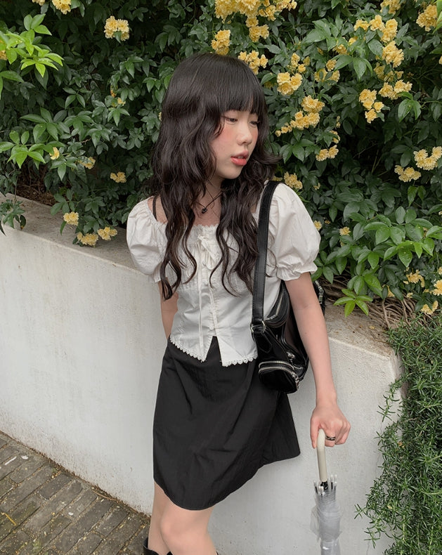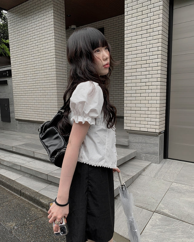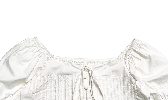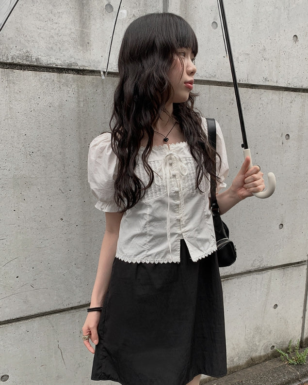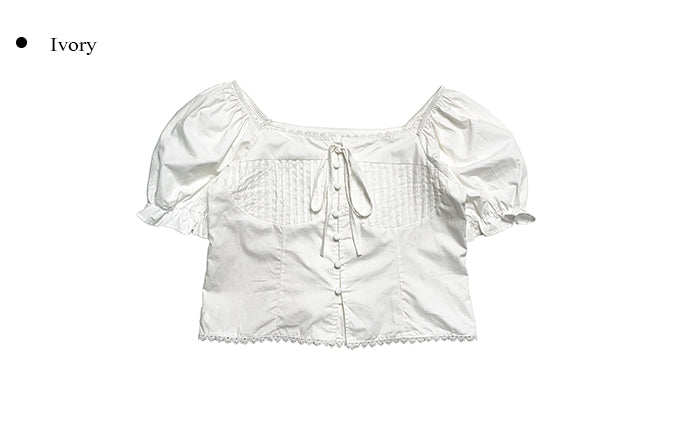 Anne Ribbon Puff Short Sleeve Blouse