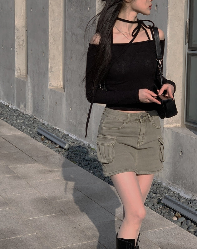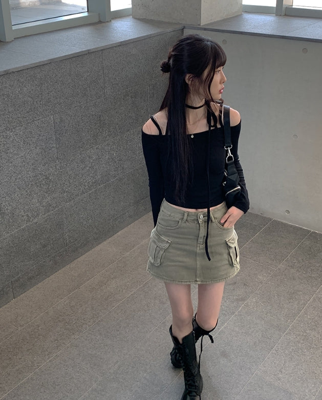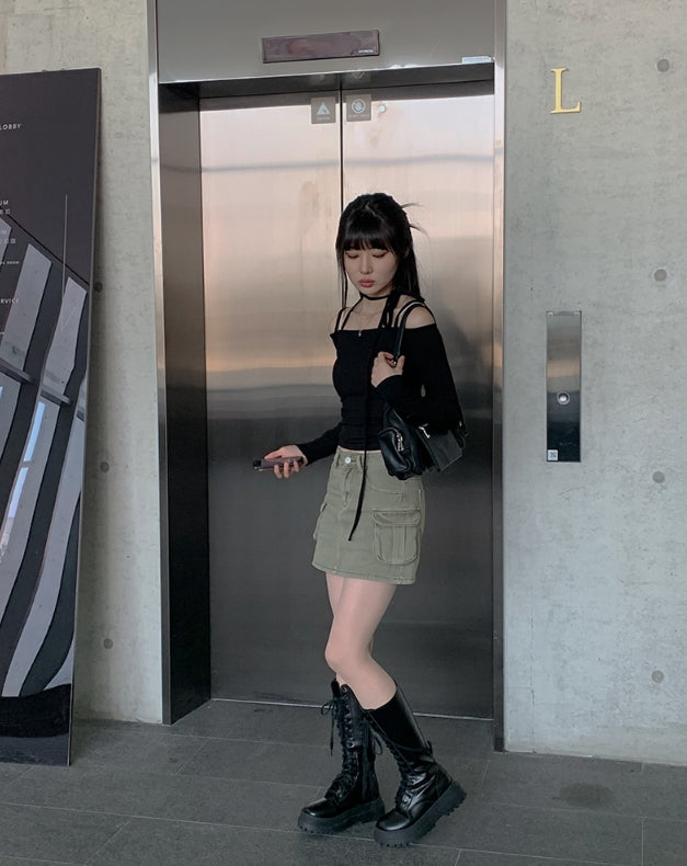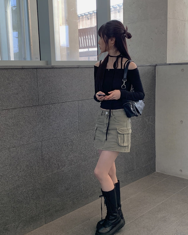 Awesome Choker Off Shoulder Ribbon Tee