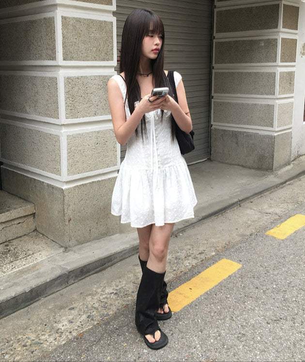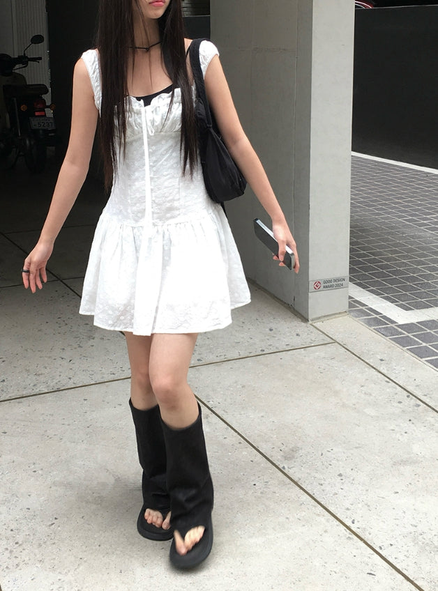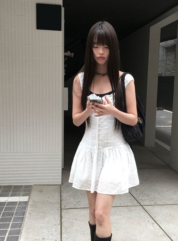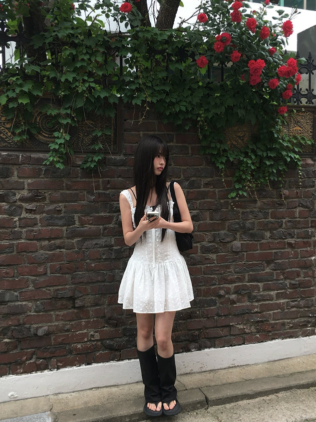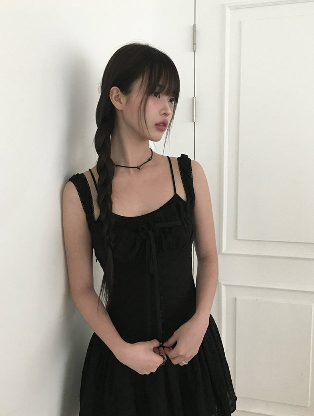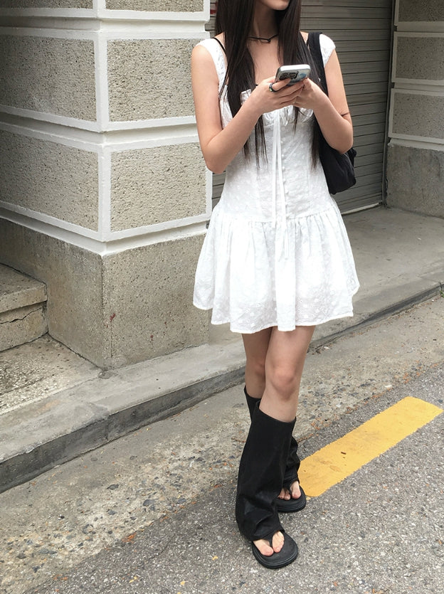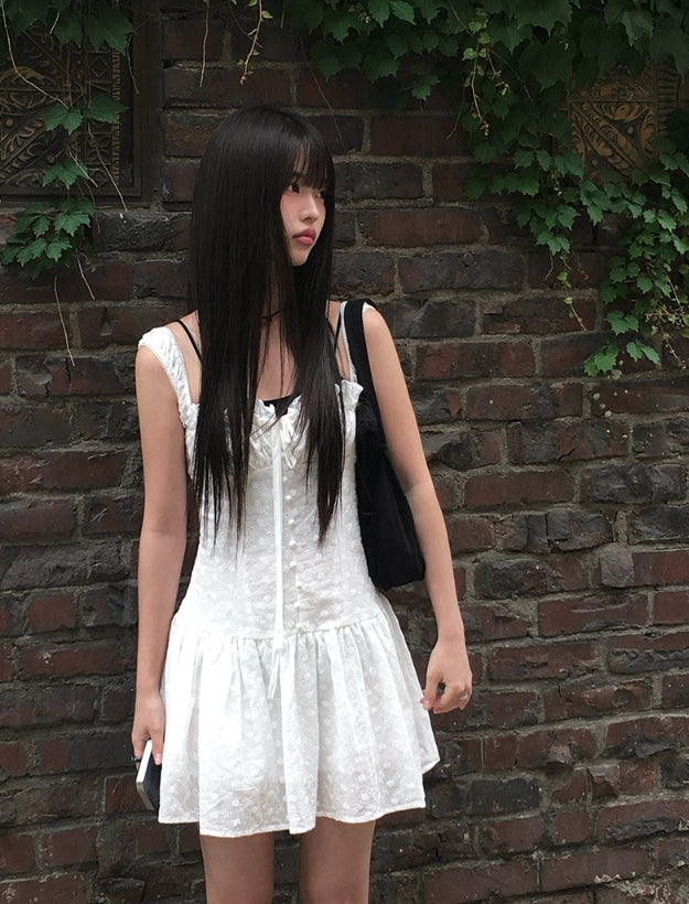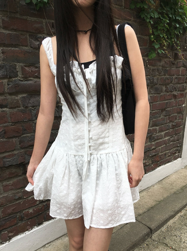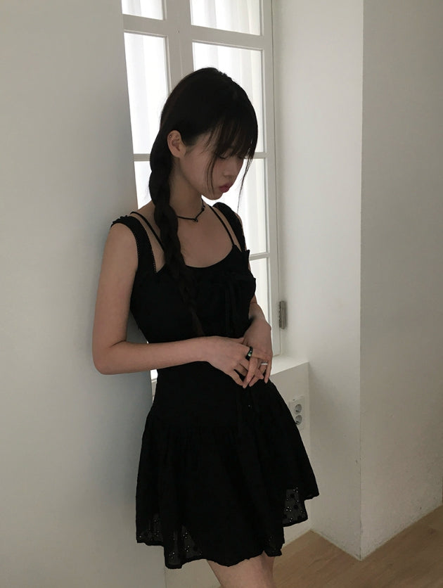 アズパンチングレースリボンノースリーブビスチェミニワンピース