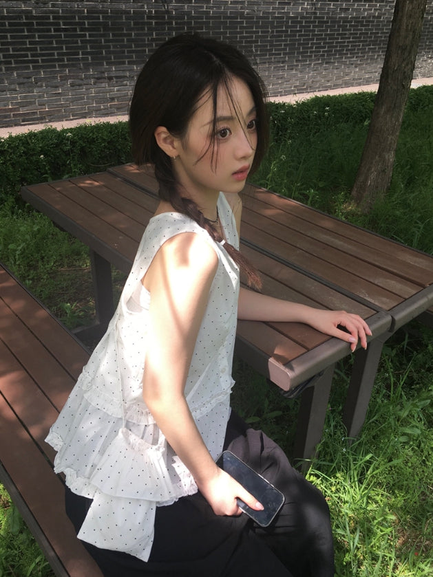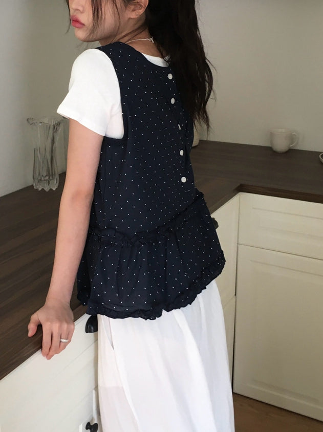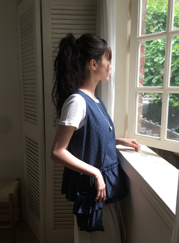 [Bag set] Palan Dot Frill Layered Sleeveless Set