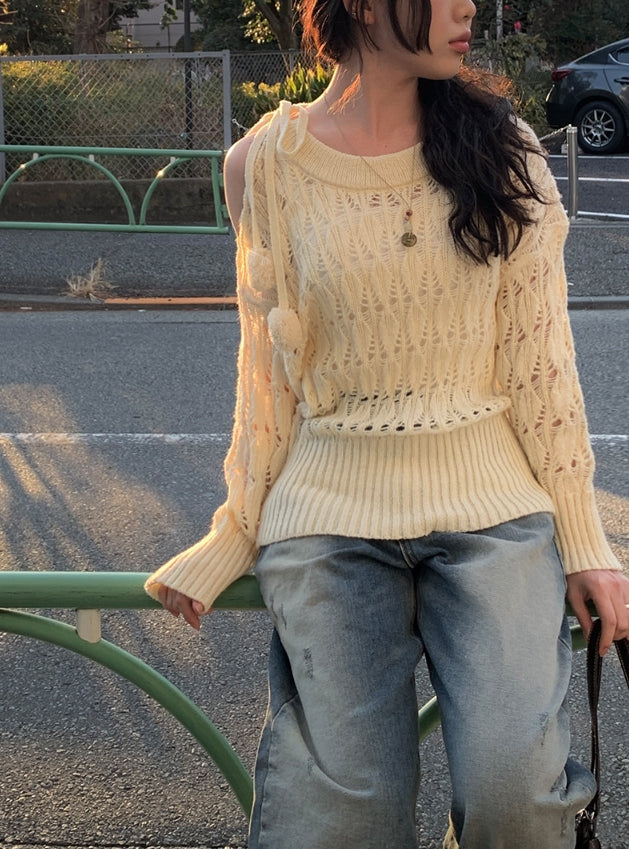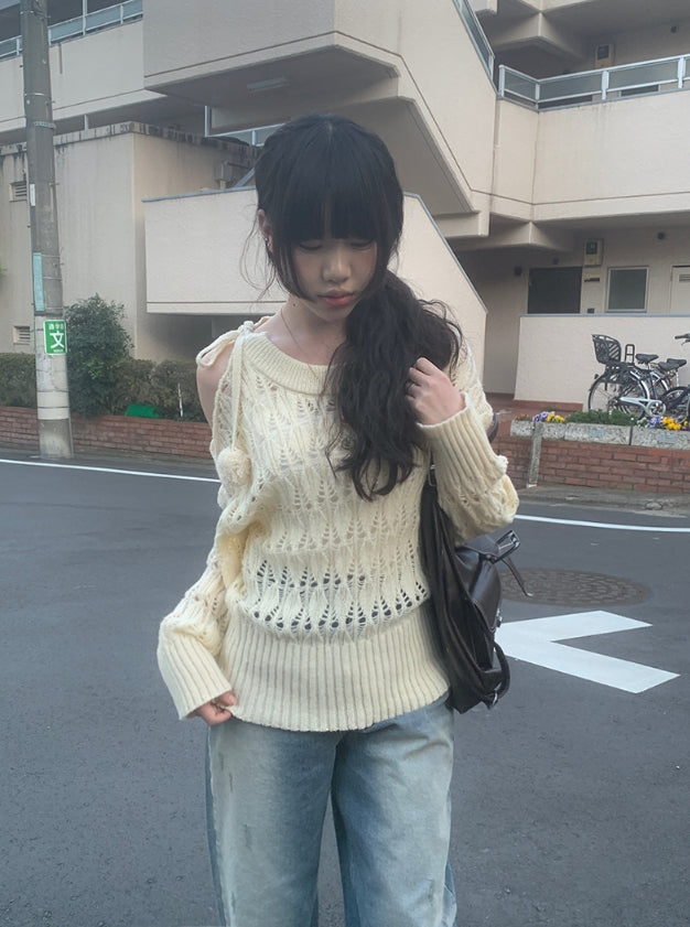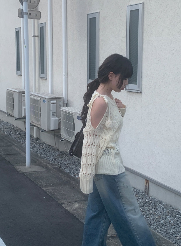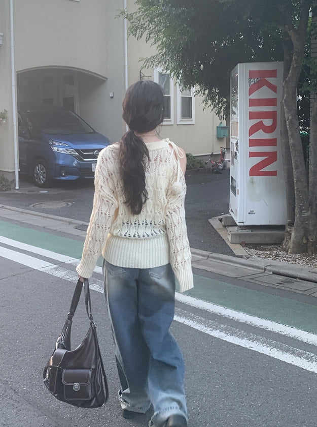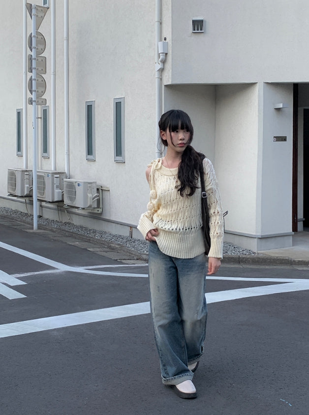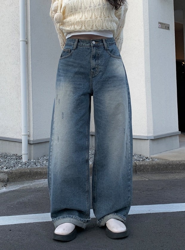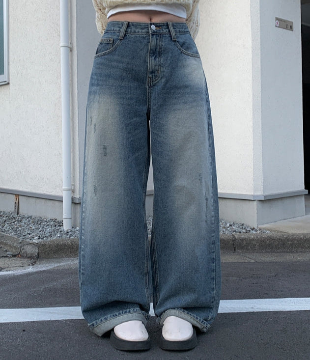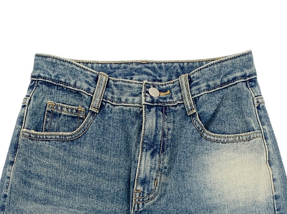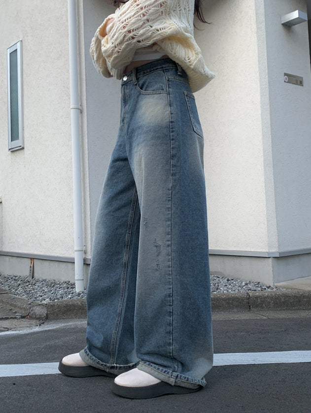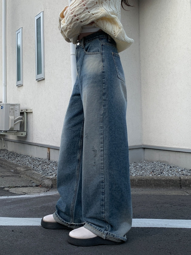 ボークダメージディテールウォッシュ加工デニムパンツ