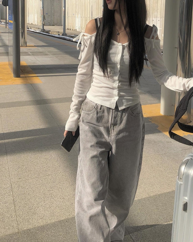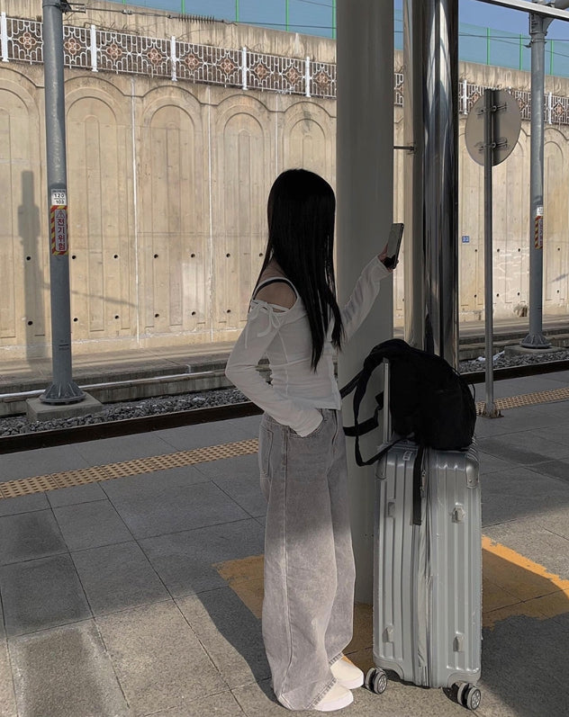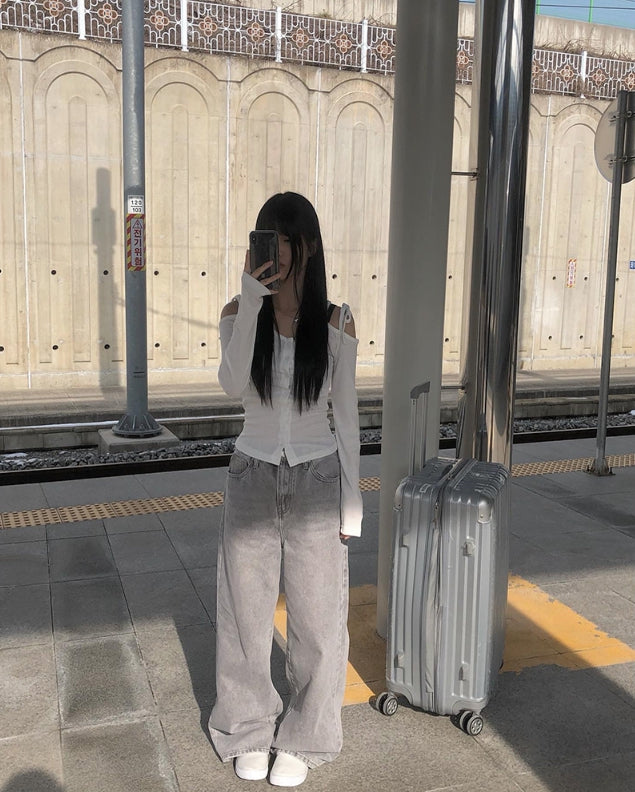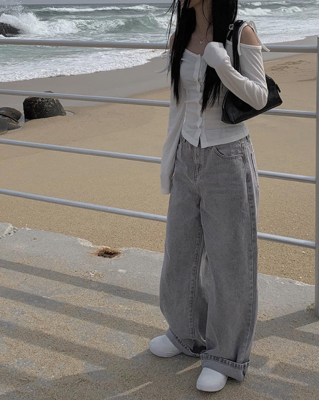 ボーディンググレーワイドデニムパンツ