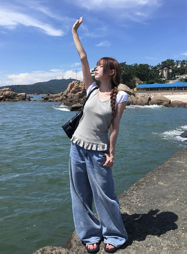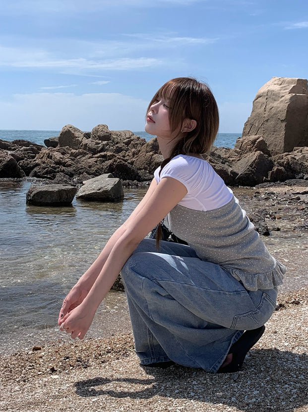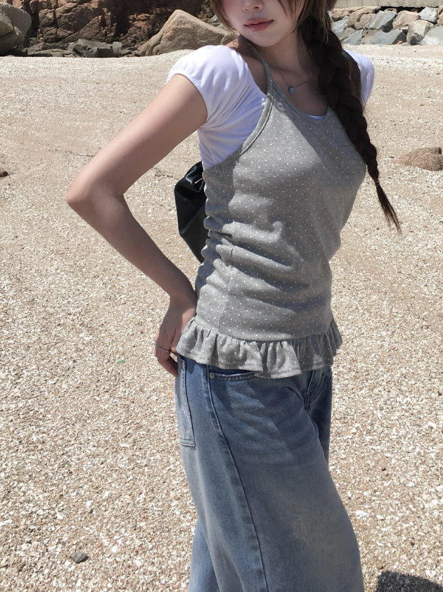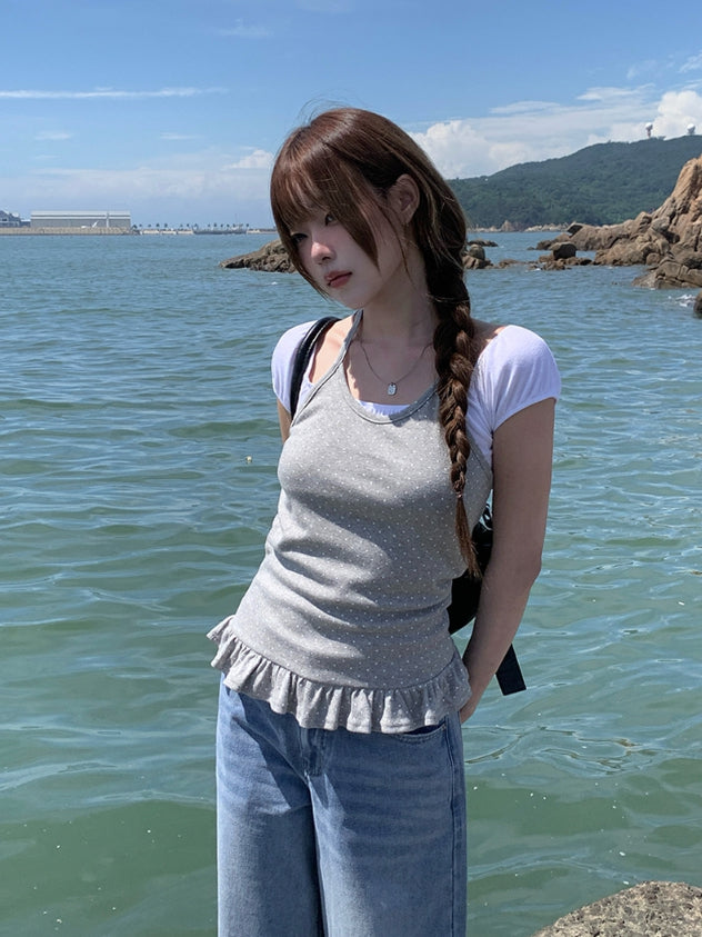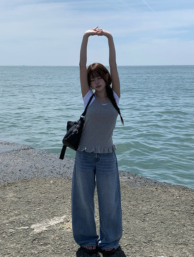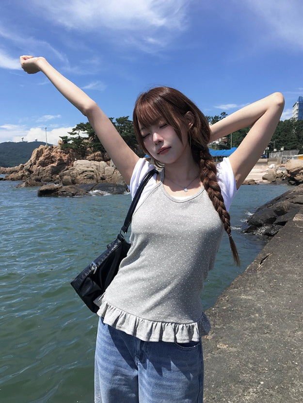 Bohol Dot Frill Halterneck Layered Sleeveless