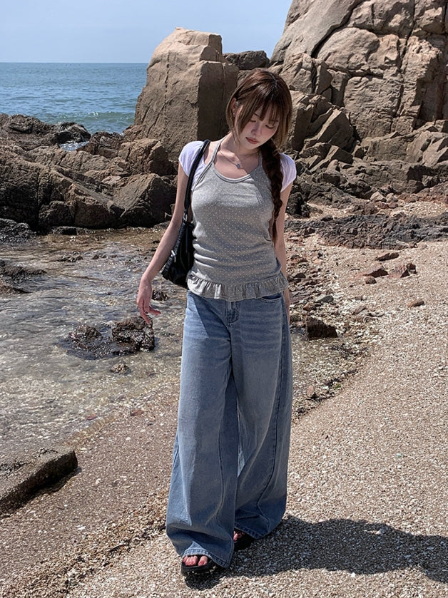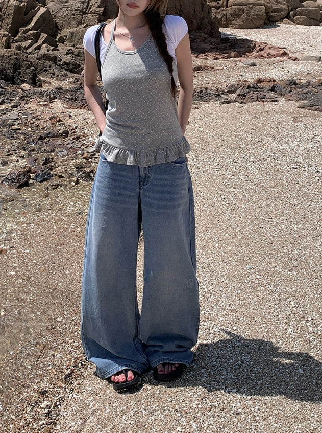 ボホールドットフリルホルターネックレイヤードノースリーブ