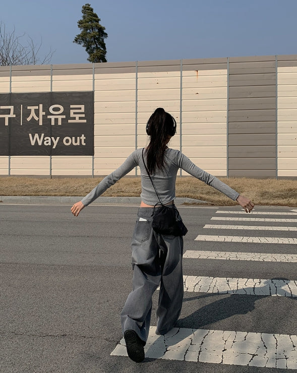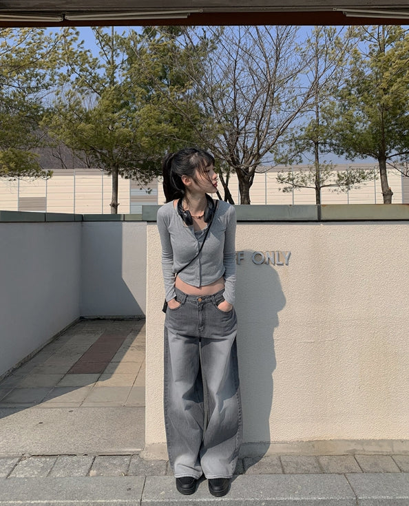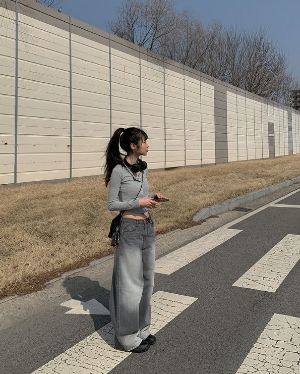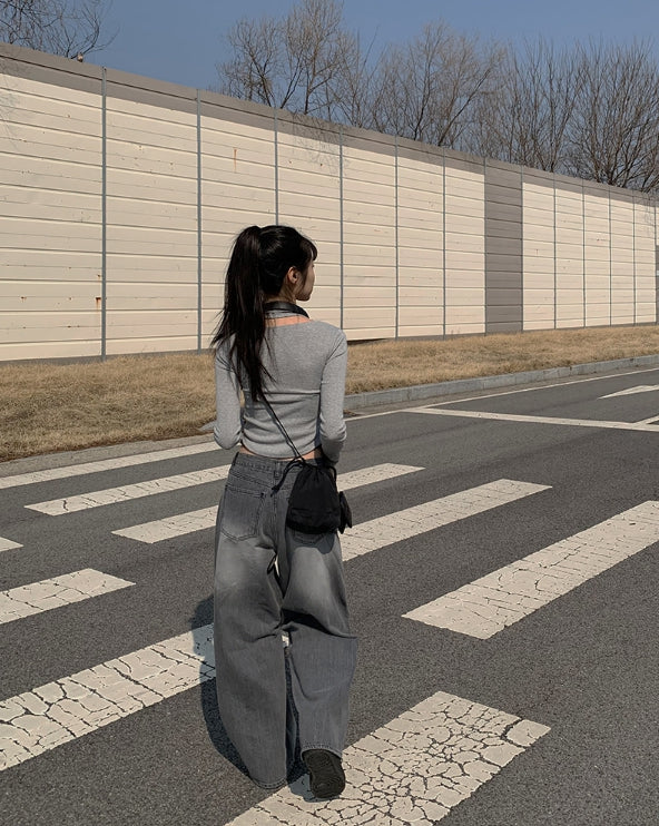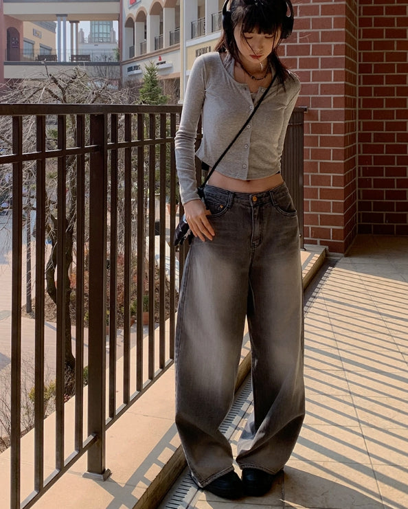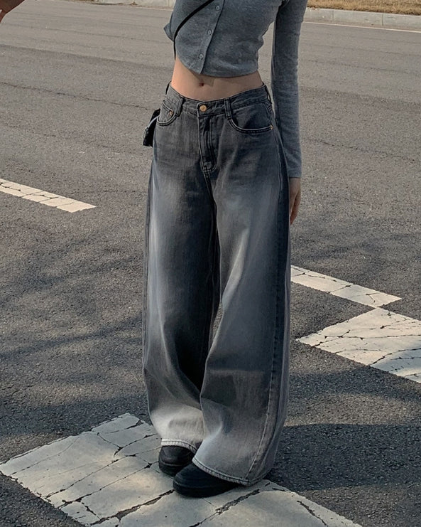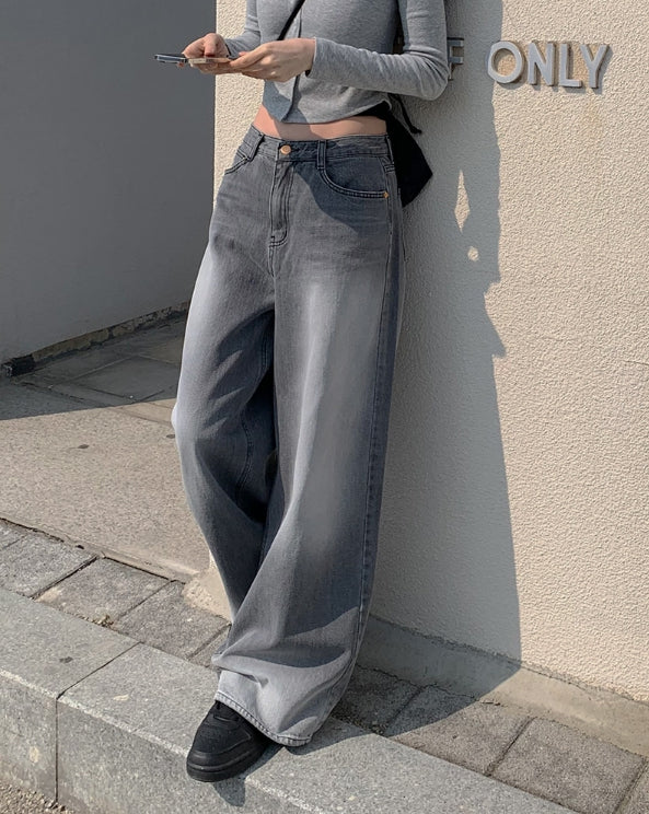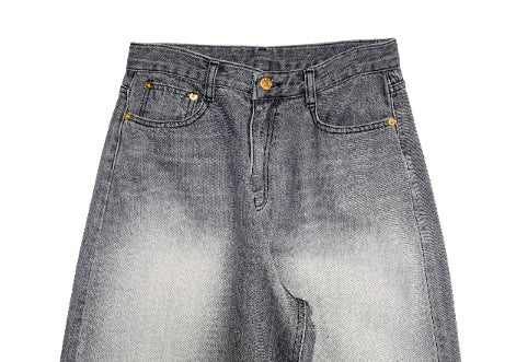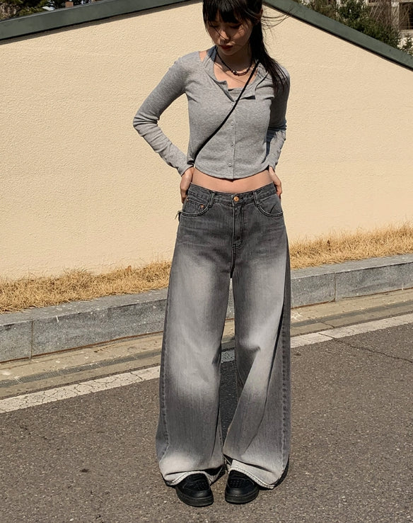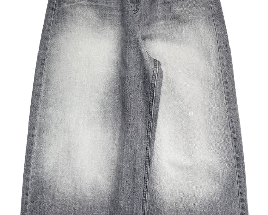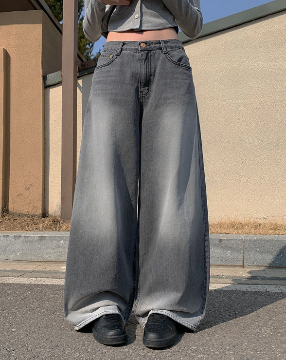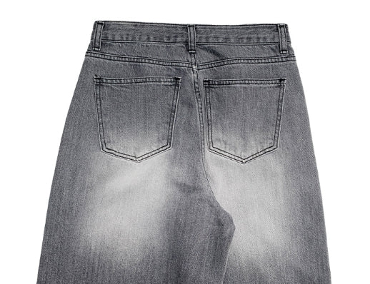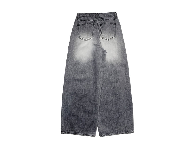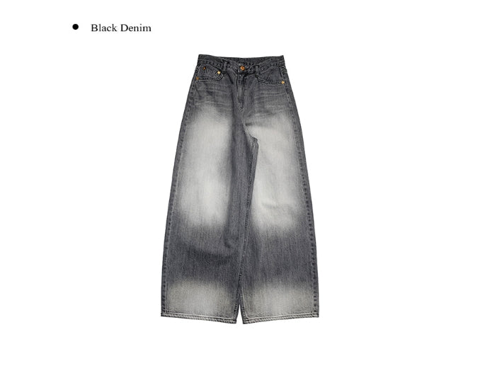 キャナーブラックデニムウォッシュ加工ワイドデニムパンツ