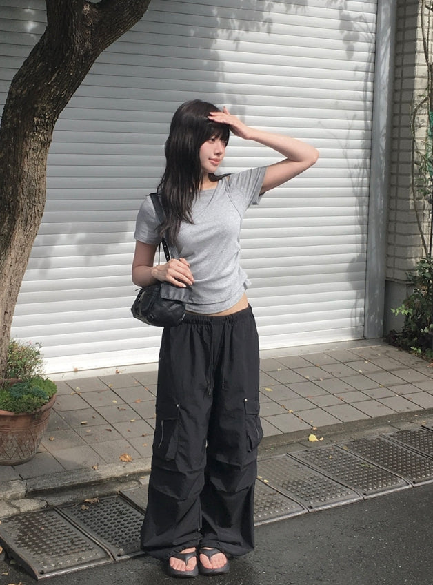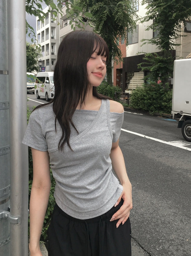 キャノンレイヤードシャーリングオフショルダーTシャツ