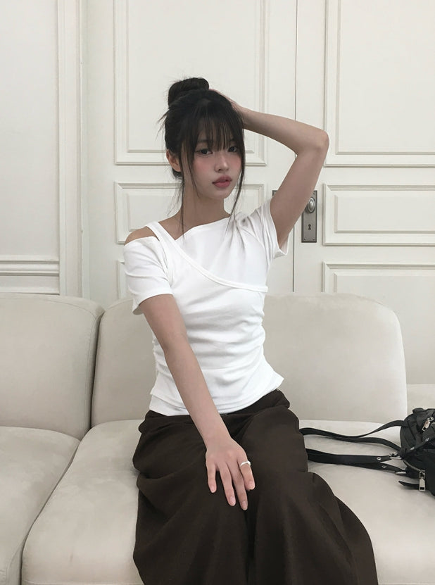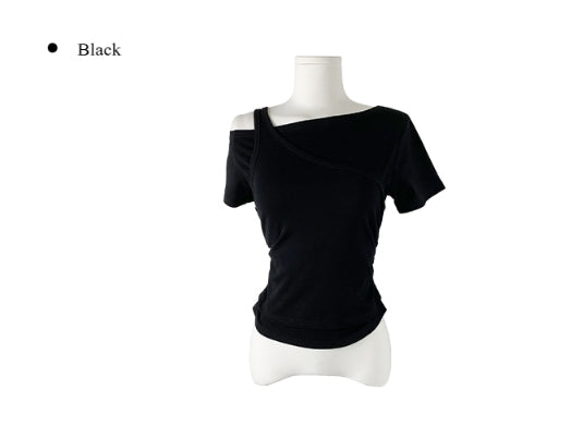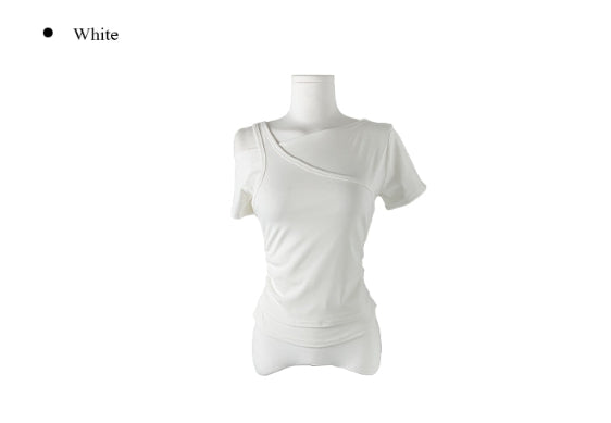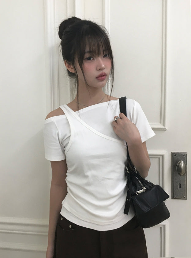 Cannon Layered Shirring Off-Shoulder T-Shirt