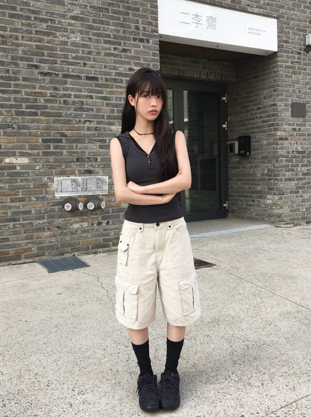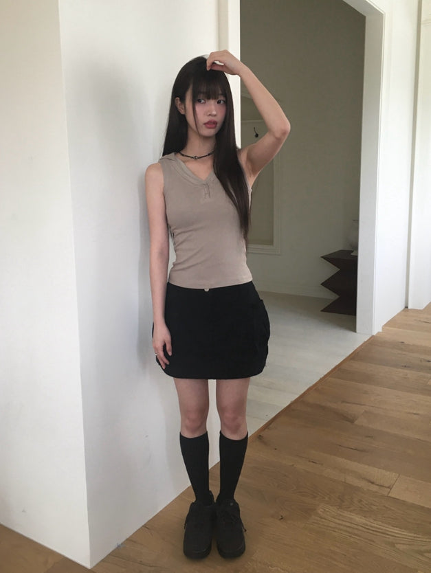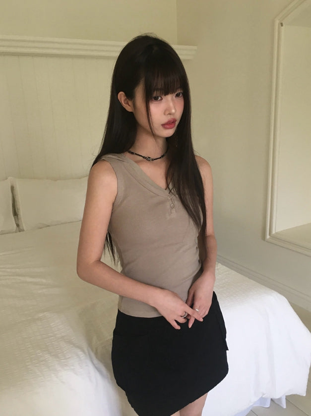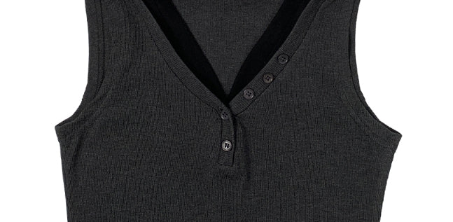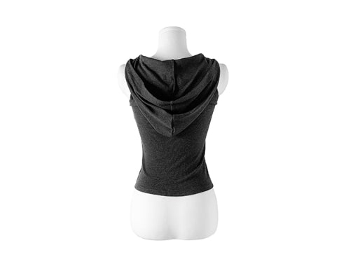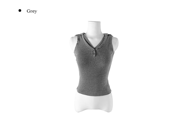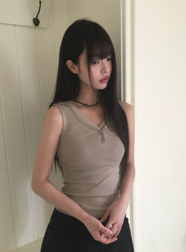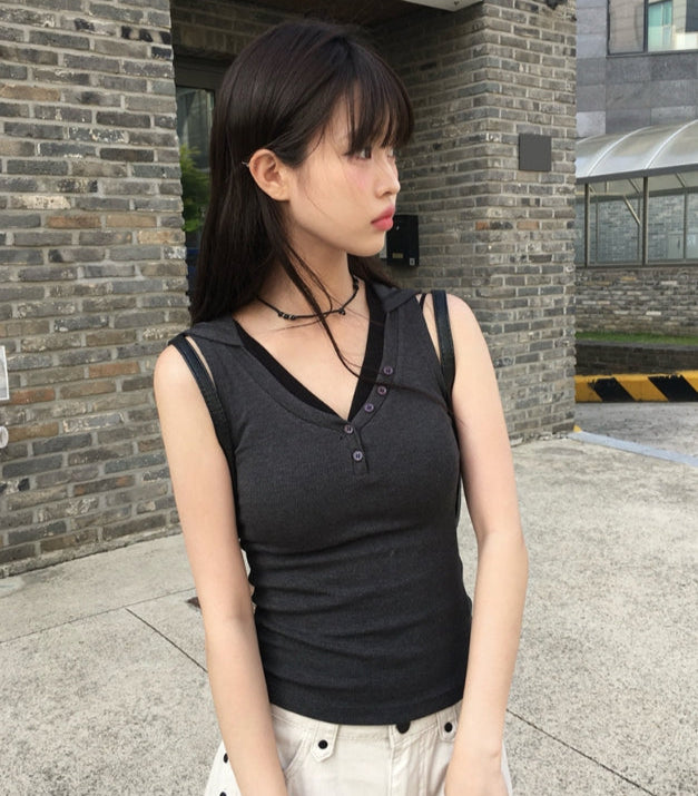 Cheche Layered Button Point Hood Sleeveless Top