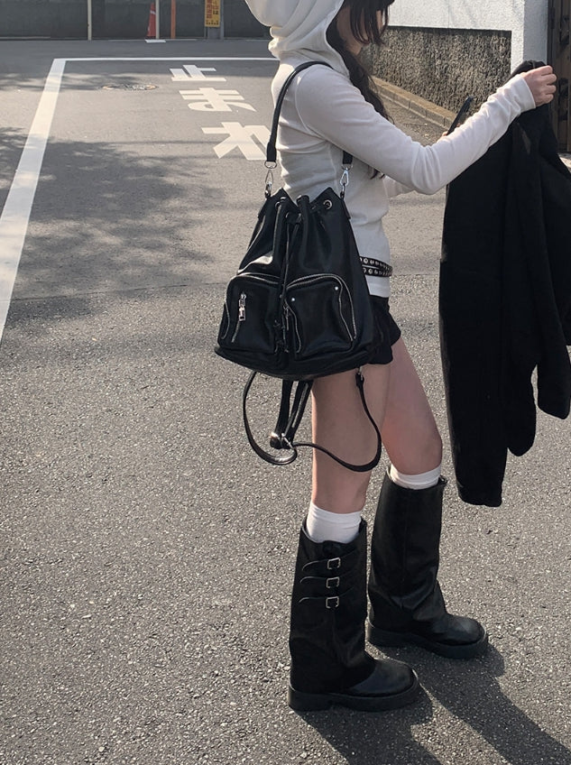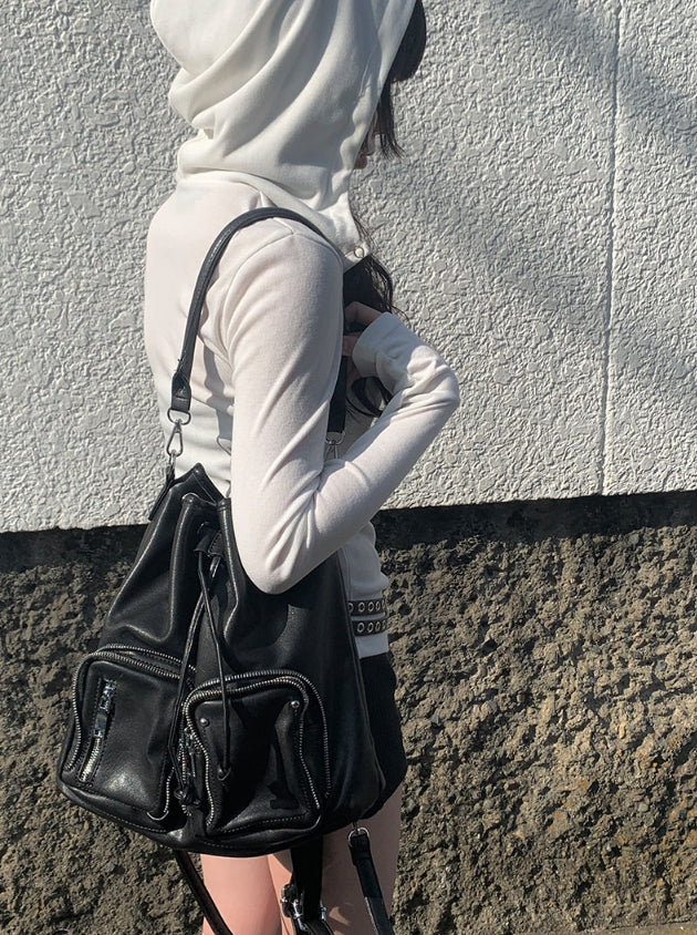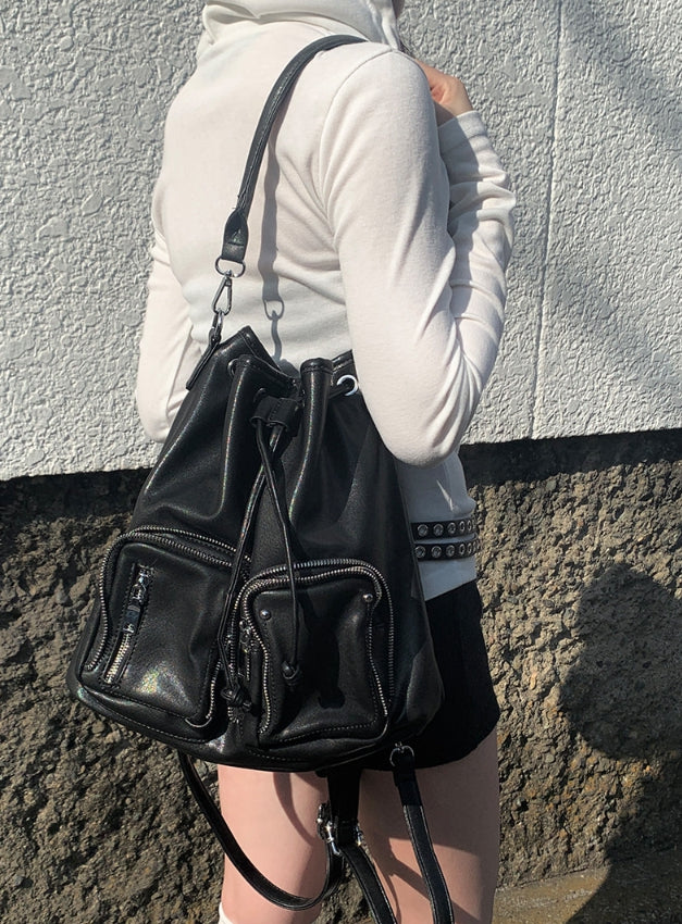 Chino Multi-Pocket Leather Shoulder Bag Backpack