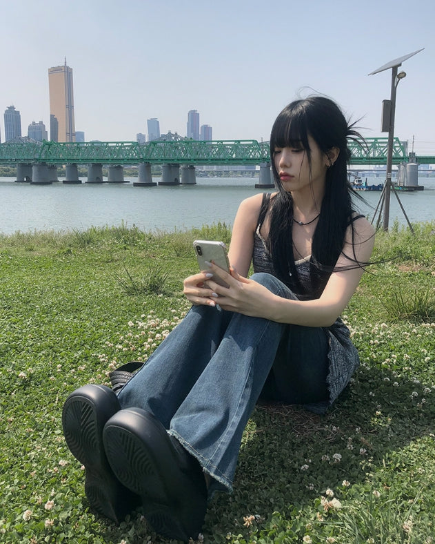 チャンキーダメージウォッシングデニムブーツカットパンツ