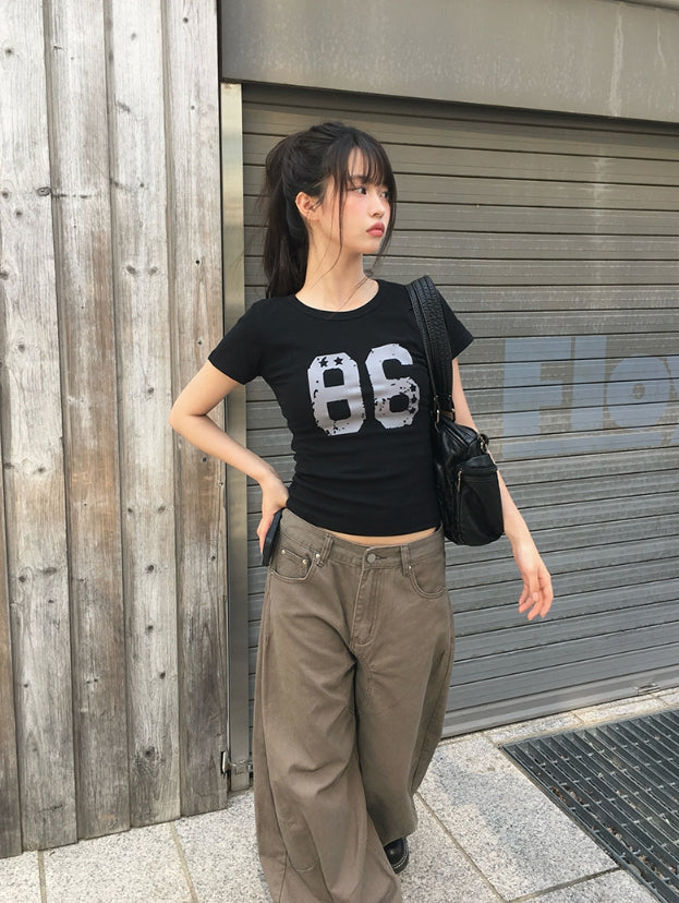 Conde 86 Number Lettering Slim Fit Short Sleeve T-Shirt
