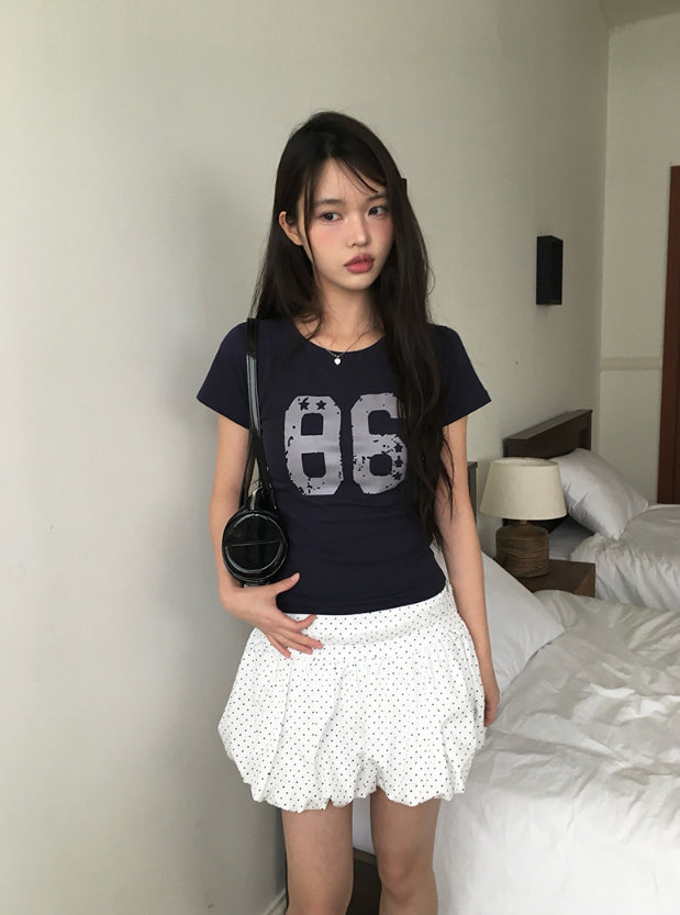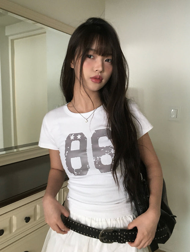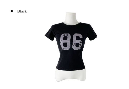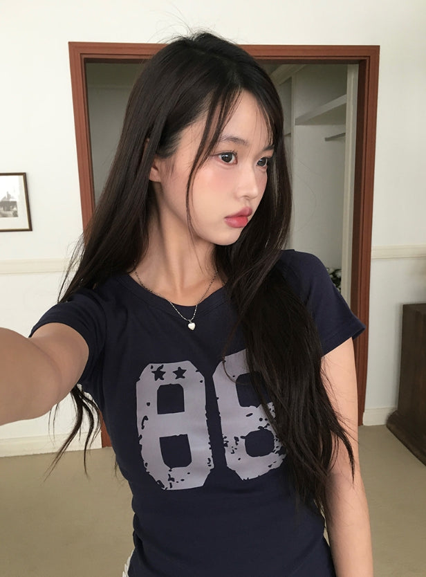 コンデ86ナンバーレタリングスリムフィット半袖Tシャツ