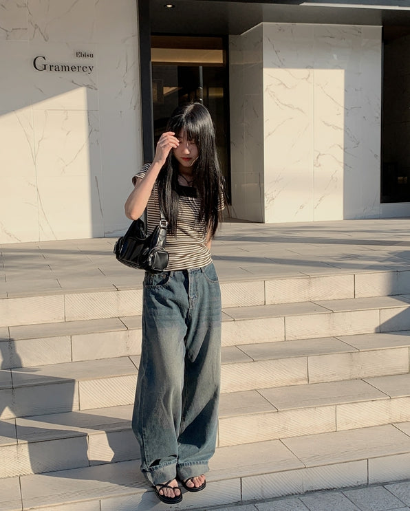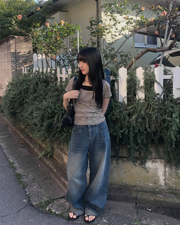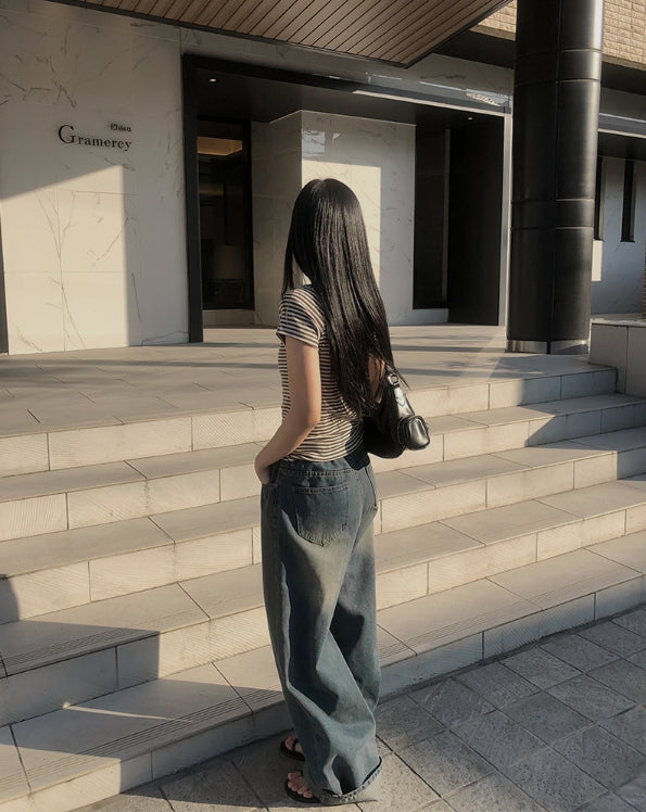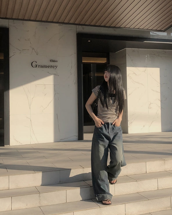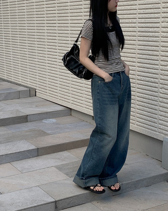 Corey washing denim wide pants