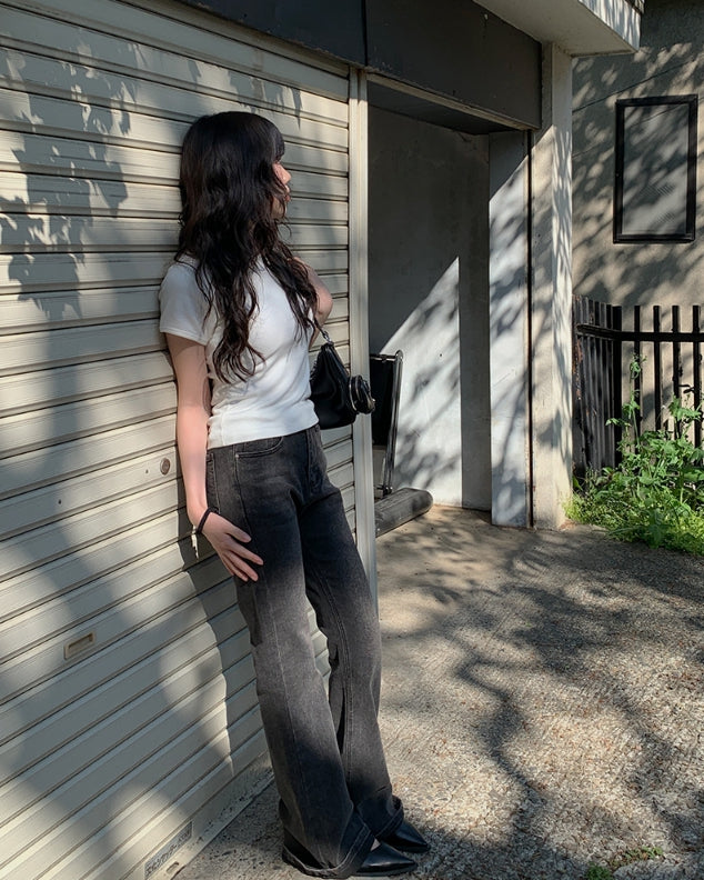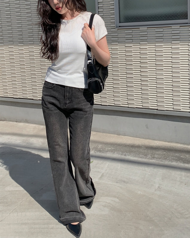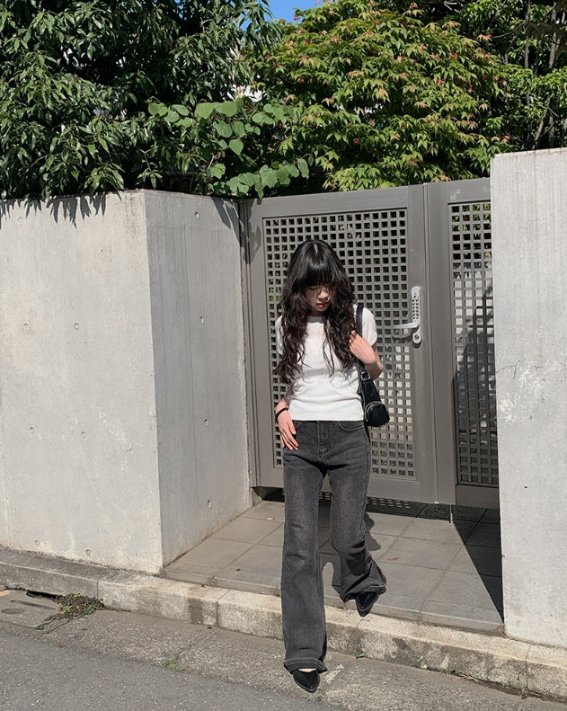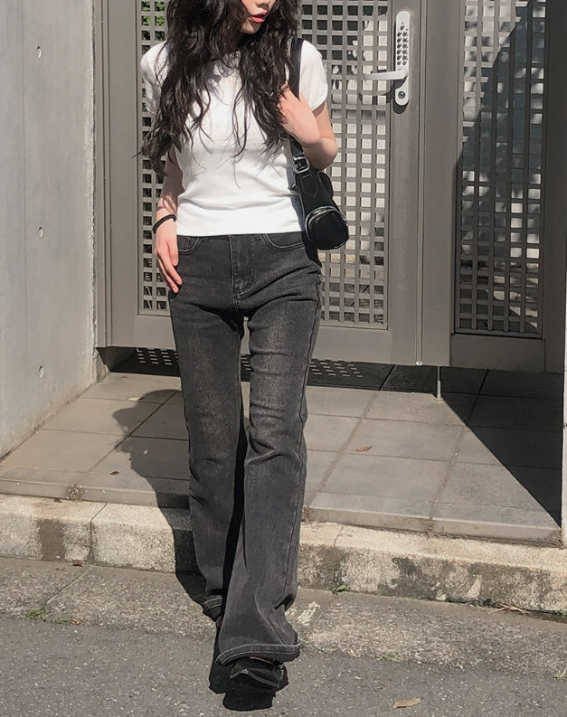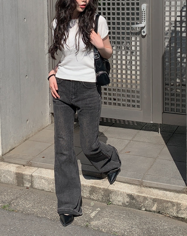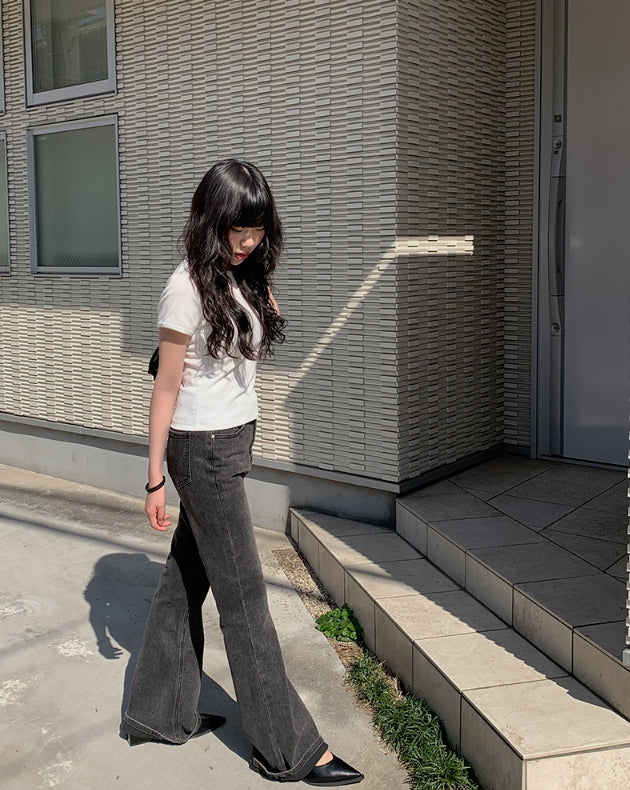 カルトブーツカットウォッシュ加工デニムパンツ