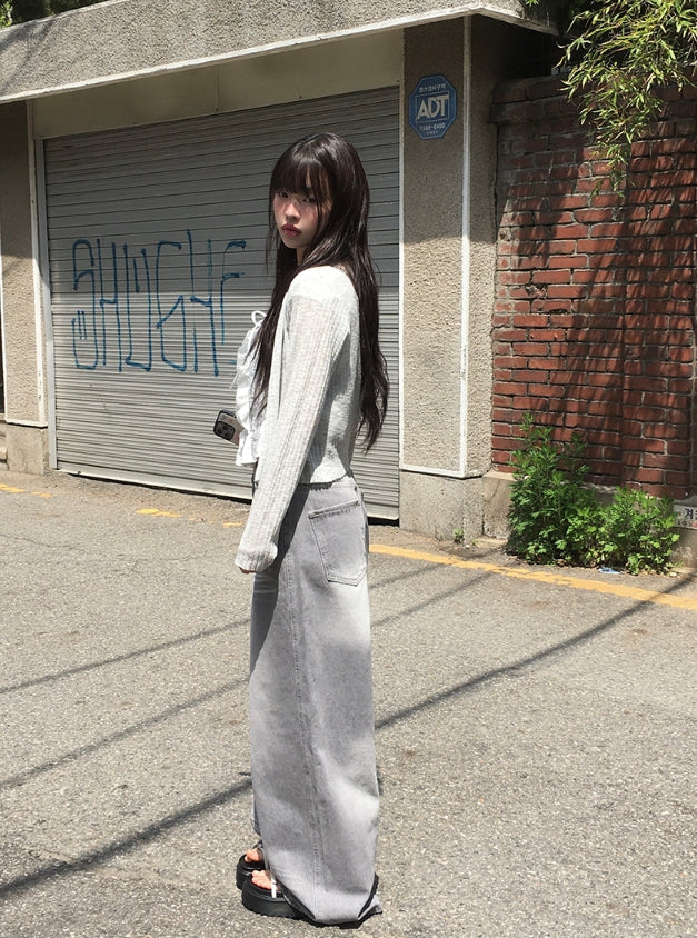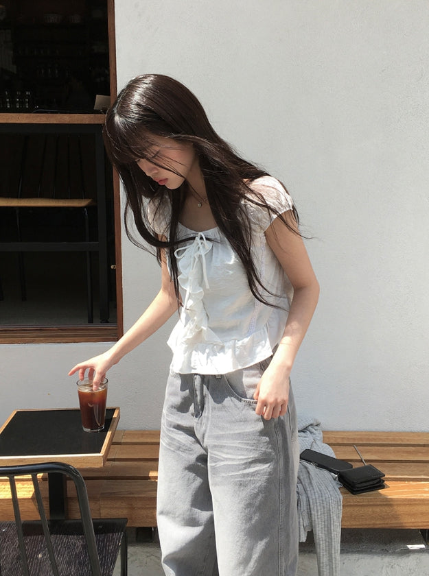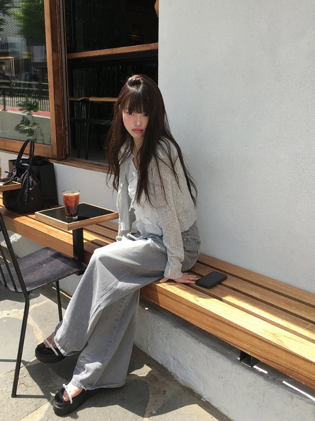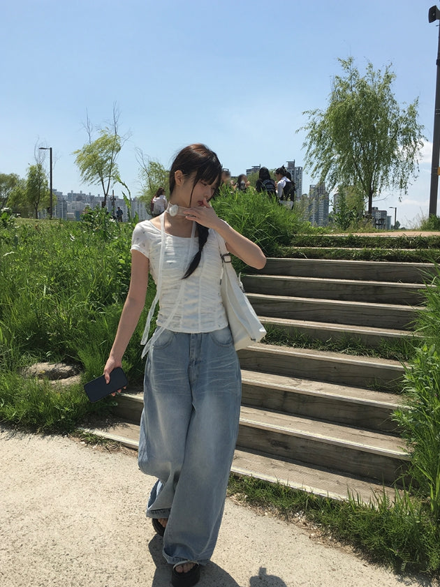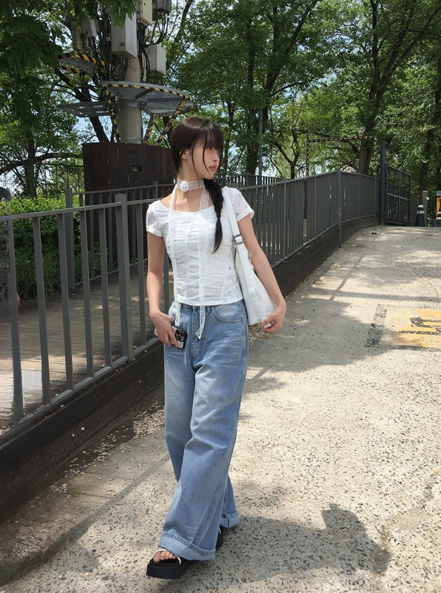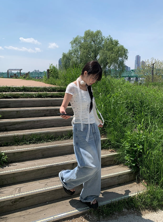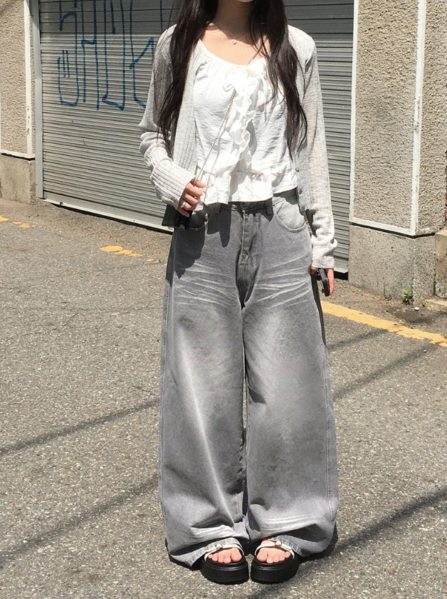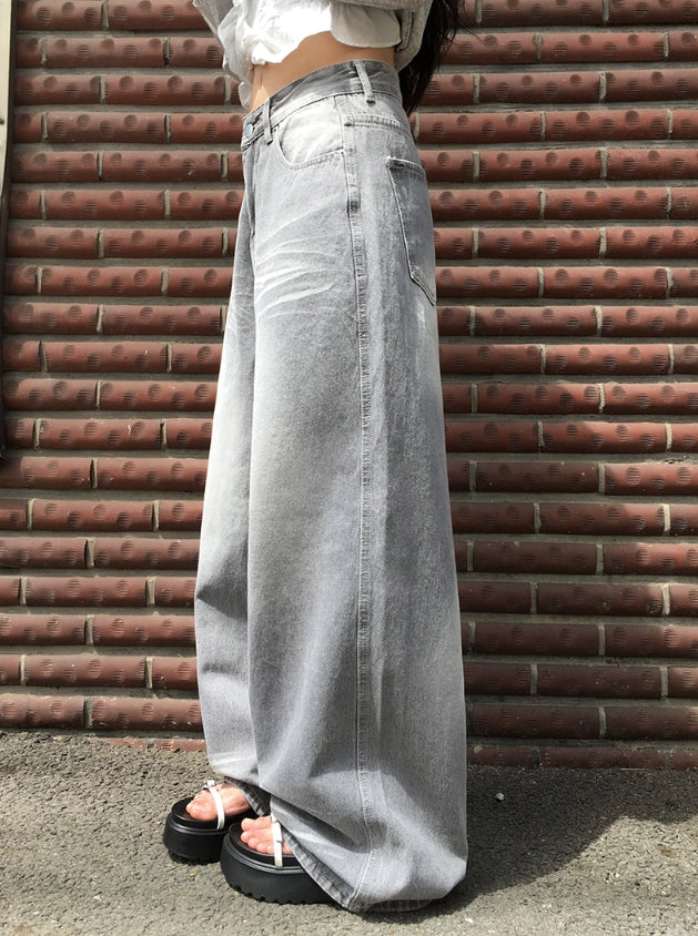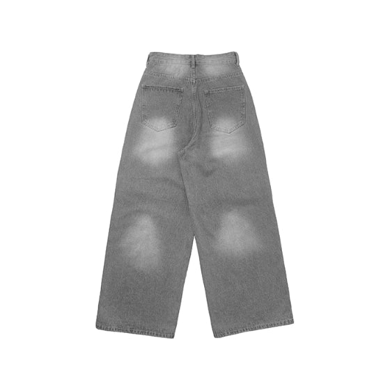 ダオキャットウォッシュ加工ワイドデニムパンツ