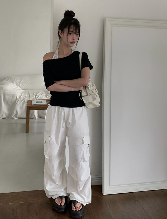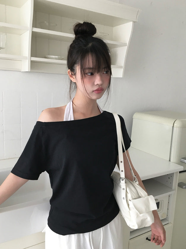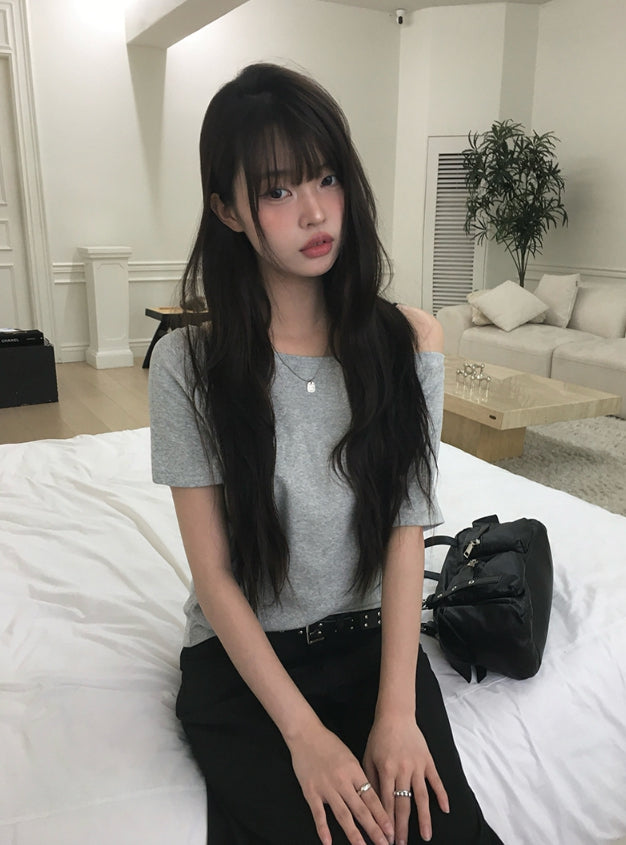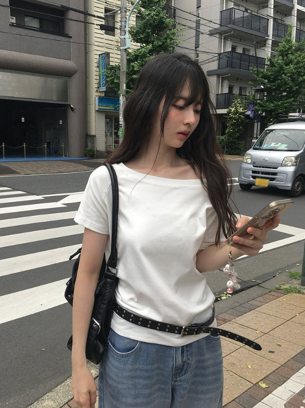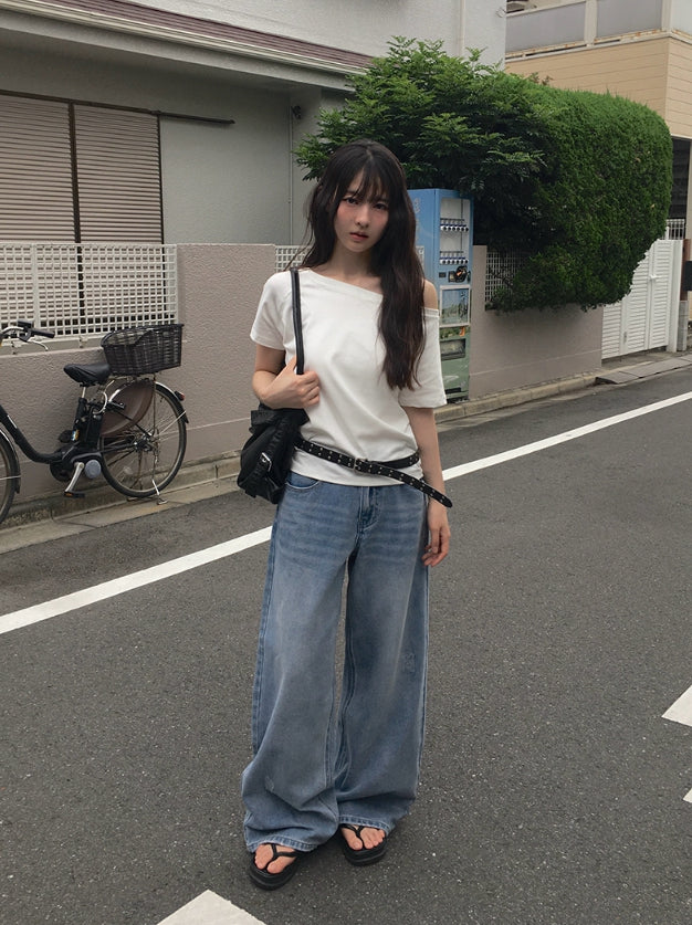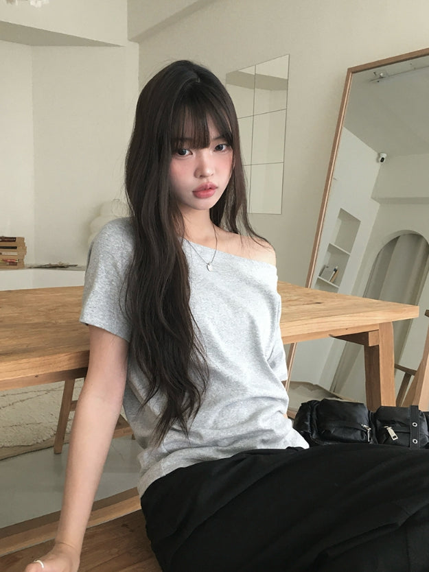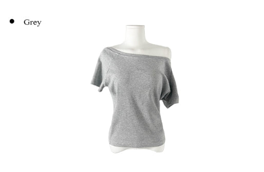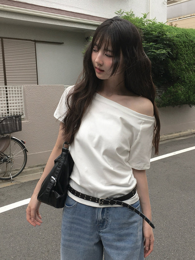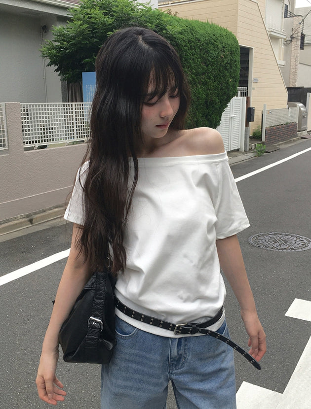デンプワンショルダーオフ半袖ルーズフィットTシャツ