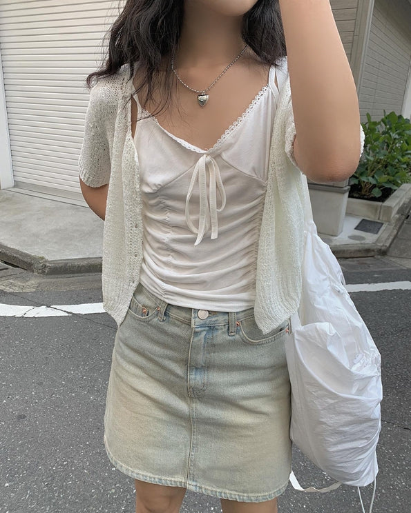 イドリボンシャーリングキャミソール