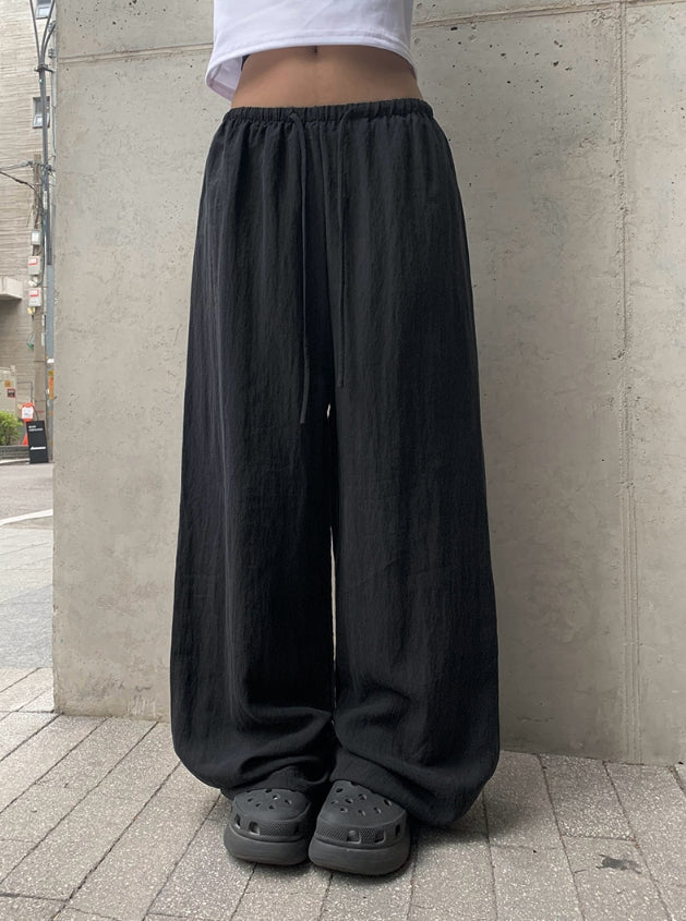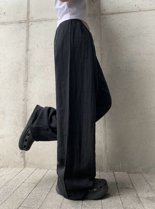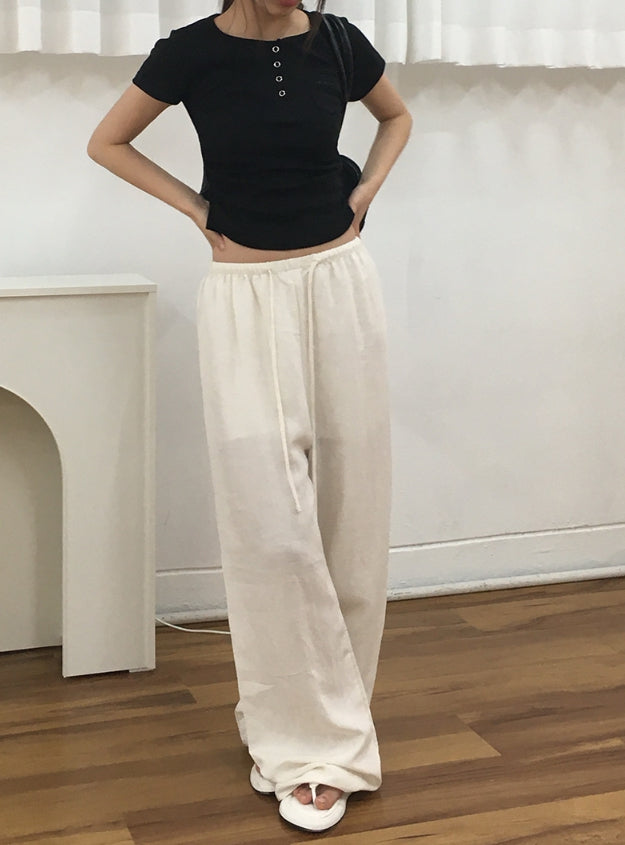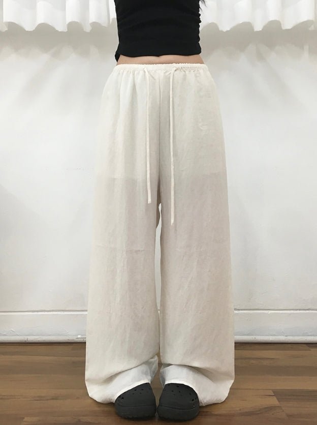 Ether Summer Linen Banding Wide Long Pants